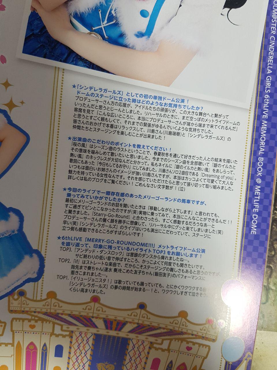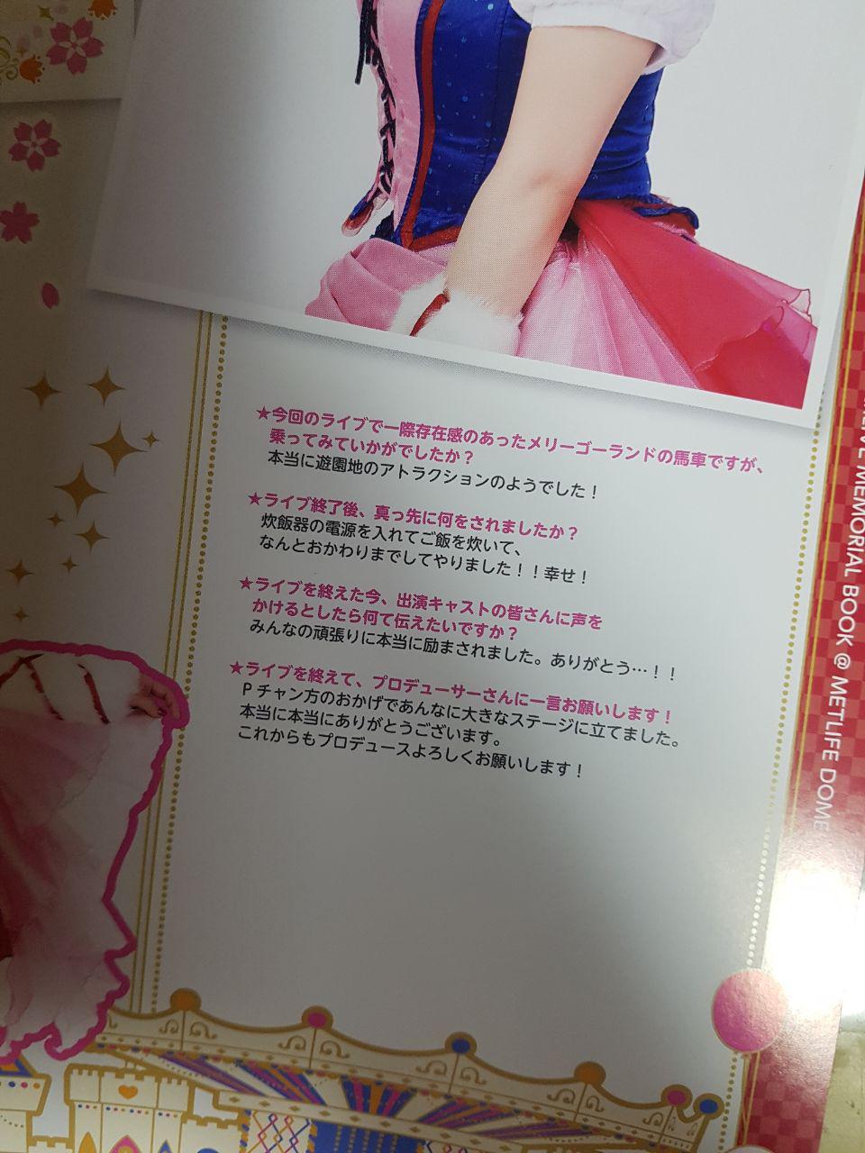 메모리얼 북의 대부분의 분량은 위에 나온 것처럼 인터뷰와 손글씨로 남긴 소감, 그리고 성우의 사진 몇 장으로 채워져 있습니다. 공연장 팜플랫도 비슷한 구성으로 되어있는데 ㅠㅠㅠㅠ 그래도 라이브 당시의 의상을 입은 사진을 수록한 것은 마음에 듭니다.