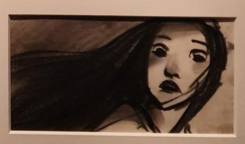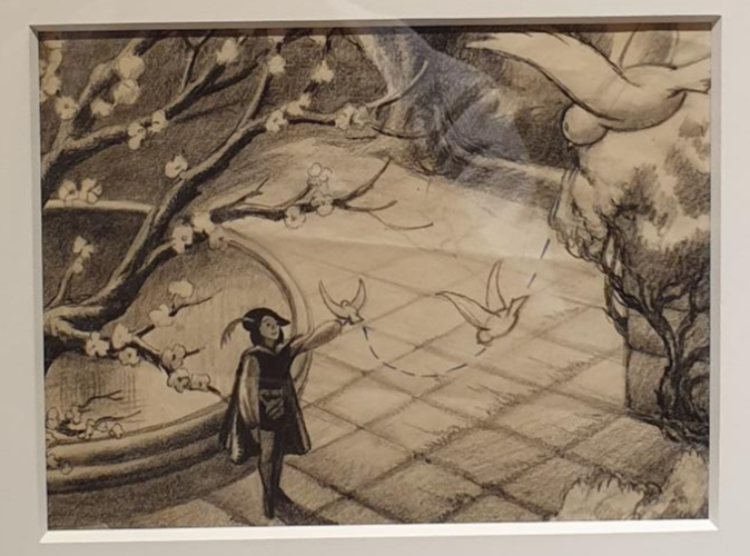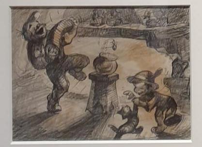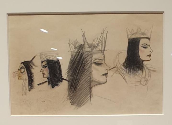 달마시안의 악역 크루엘라의 원화입니다. 광기 넘치는 표정이 무척 인상적이었던 빌런이었고 그에 맞게 대조되는 두 개의 그림을 걸어둔 것이 재미있습니다.