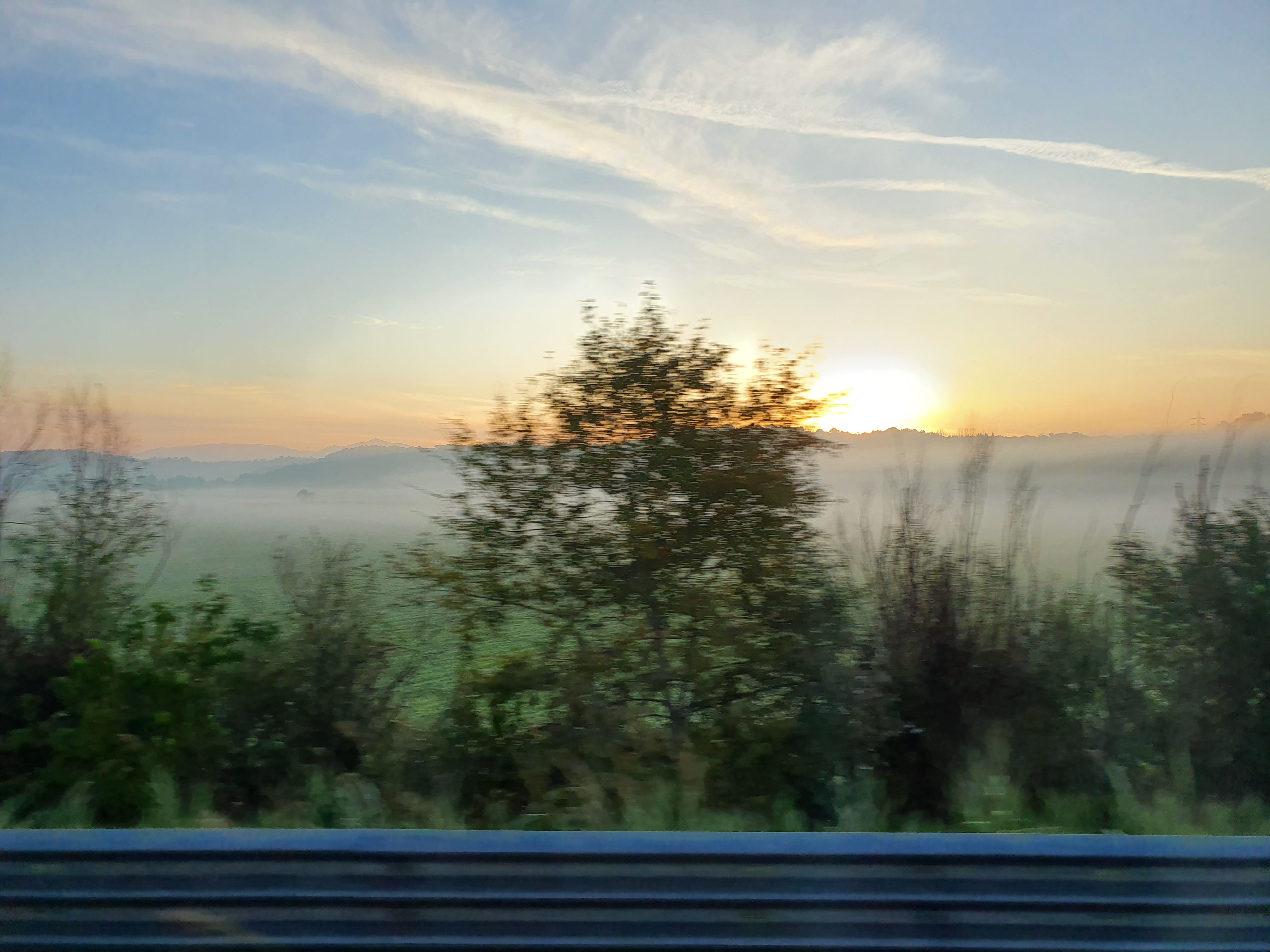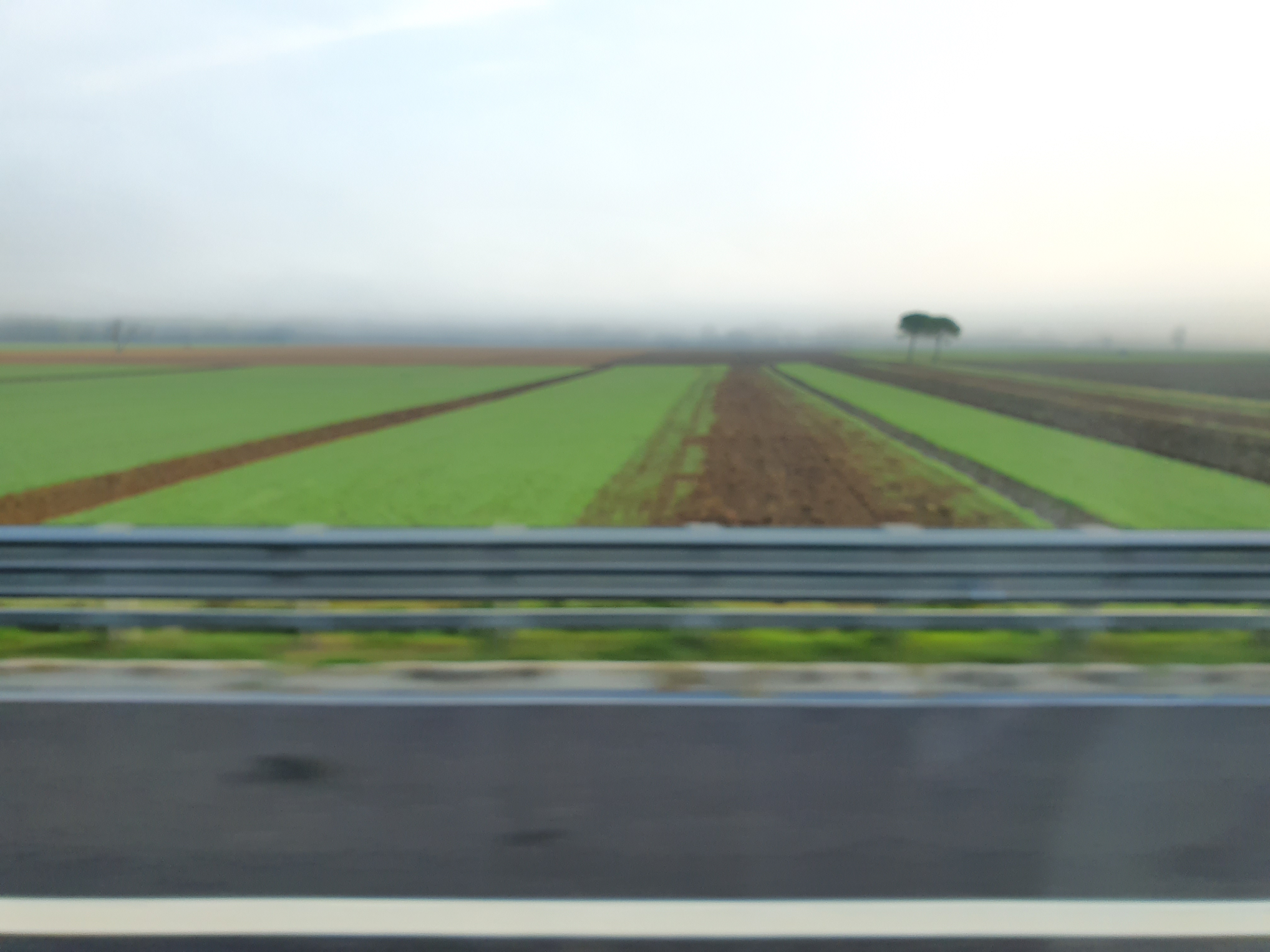 버스로 이동하면서 찍은 풍경 사진. 대체로 아침의 이탈리아는 안개가 자욱하게 낀 뒤 서서히 안개가 걷히는 듯 했다. 풍경은 대체로 드넓은 평야. 높은 산과 그 위에 조금씩 보이는 집들 위주로 많이 보였다. 약간의 차이는 있지만 우리나라와 흡사한 부분이 많았던 것 같다.