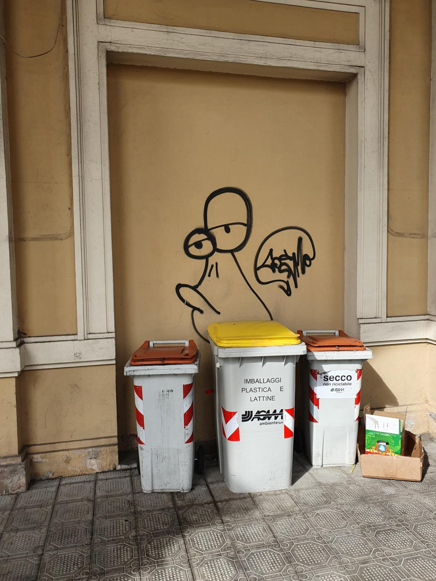 식당과는 별개로 근처 풍경이 꽤 '유럽스럽다'는 느낌이 들어서 몇 장의 사진을 찍어봤다. 쓰레기통도 고풍스럽냐고 묻는다면 그건 아니고, 그라피티가 그려진 것이 뭔가 재미있어서 찍어봤다.