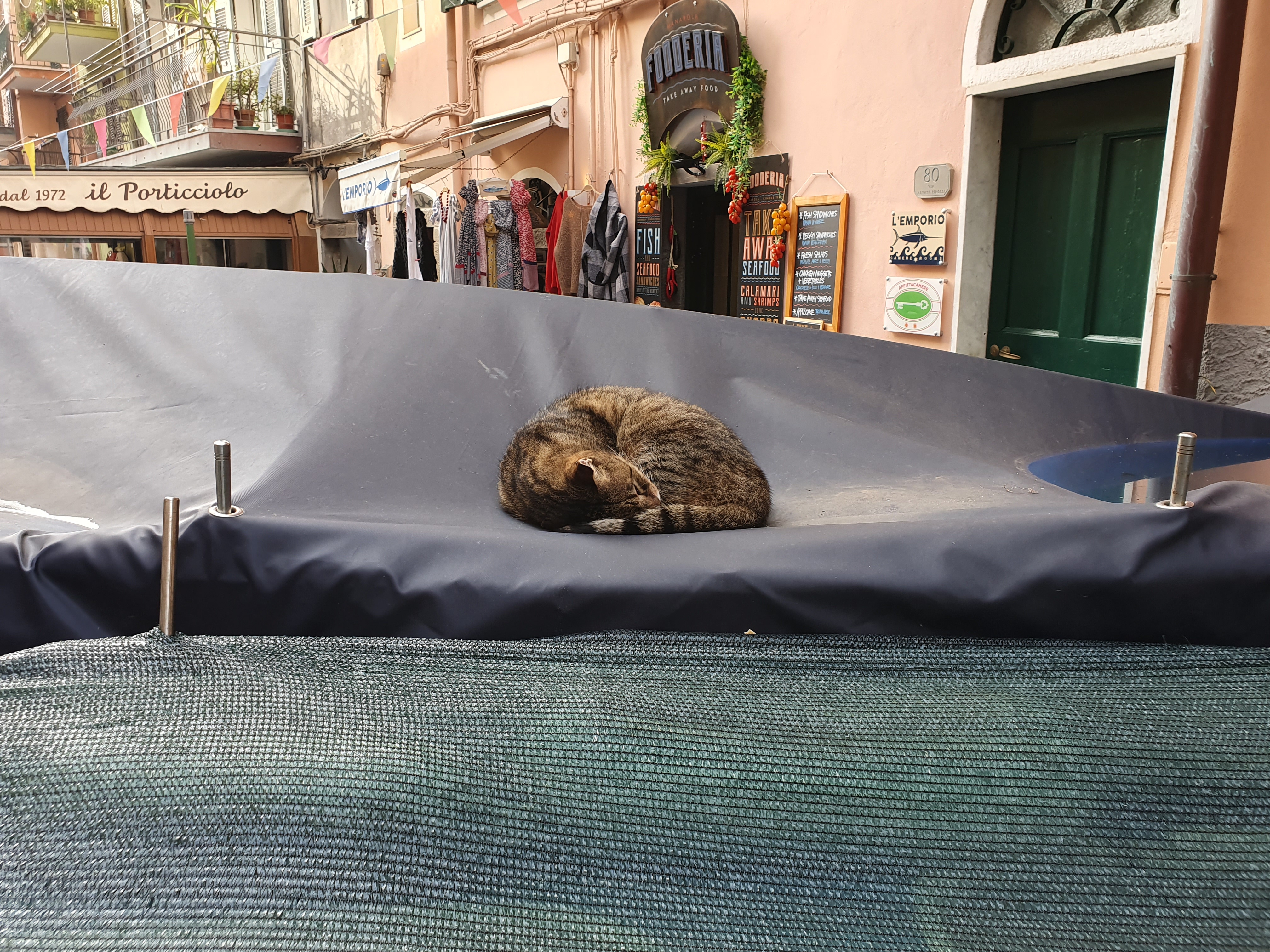 보트 덮개 위에서 냥모나이트를 만들고 자는 녀석. 쓰다듬어도 깨지 않았다. 일행 분께서 얘 말고도 상점가에 야옹이 두 마리가 더 있었다고 했다. 다리 위에서 보이긴 했는데, 마을을 떠날 시간이 돼서 직접 만나보진 못했다...