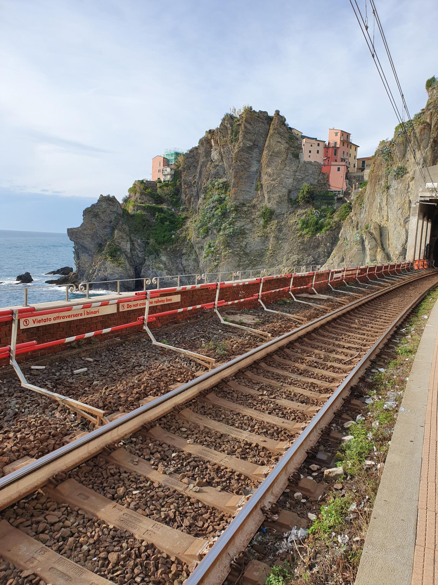 좌측 사진은 열차를 탑승하기 위해 대기하던 플랫폼이고 우측 사진은 마나롤라 역의 풍경이다. 플랫폼이 넓은 편이 아닌 데다 고속열차도 지나가는 길이어서 무척이나 위험하게 느껴졌다.