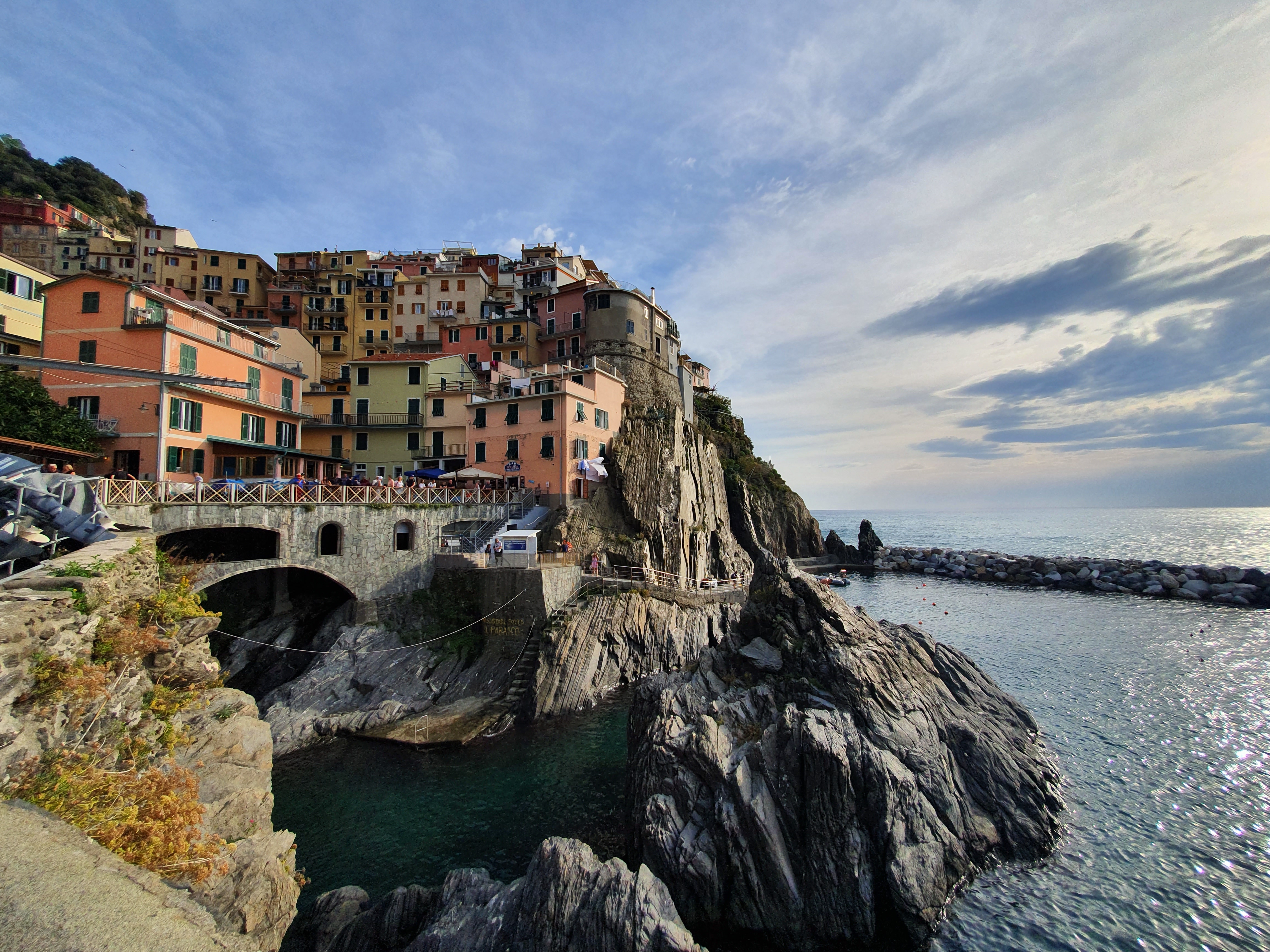 마을 양쪽 끝에서 본 마나롤라(Manarola). 오른쪽 사진에서도 볼 수 있는 것처럼 여기는 꽤 멋진 풍경을 볼 수 있는 곳이다.