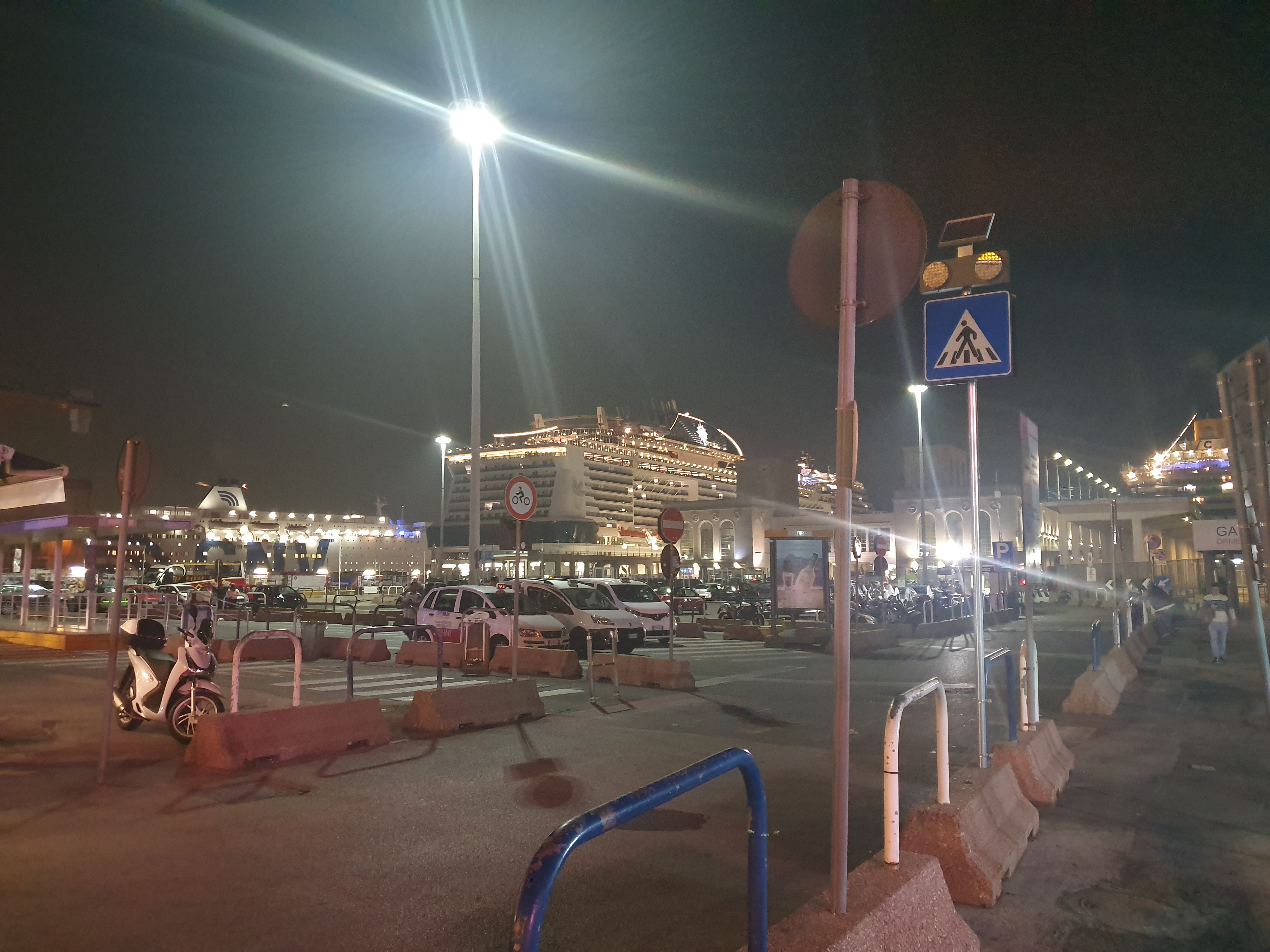 나폴리항 도착. 저 멀리 호화 크루즈선이 보입니다. 나폴리항 바로 앞에는 누오보 성이 있었는데, 가로등 때문에 어떻게 찍어도 망한 사진만 나와서 포기했습니다.