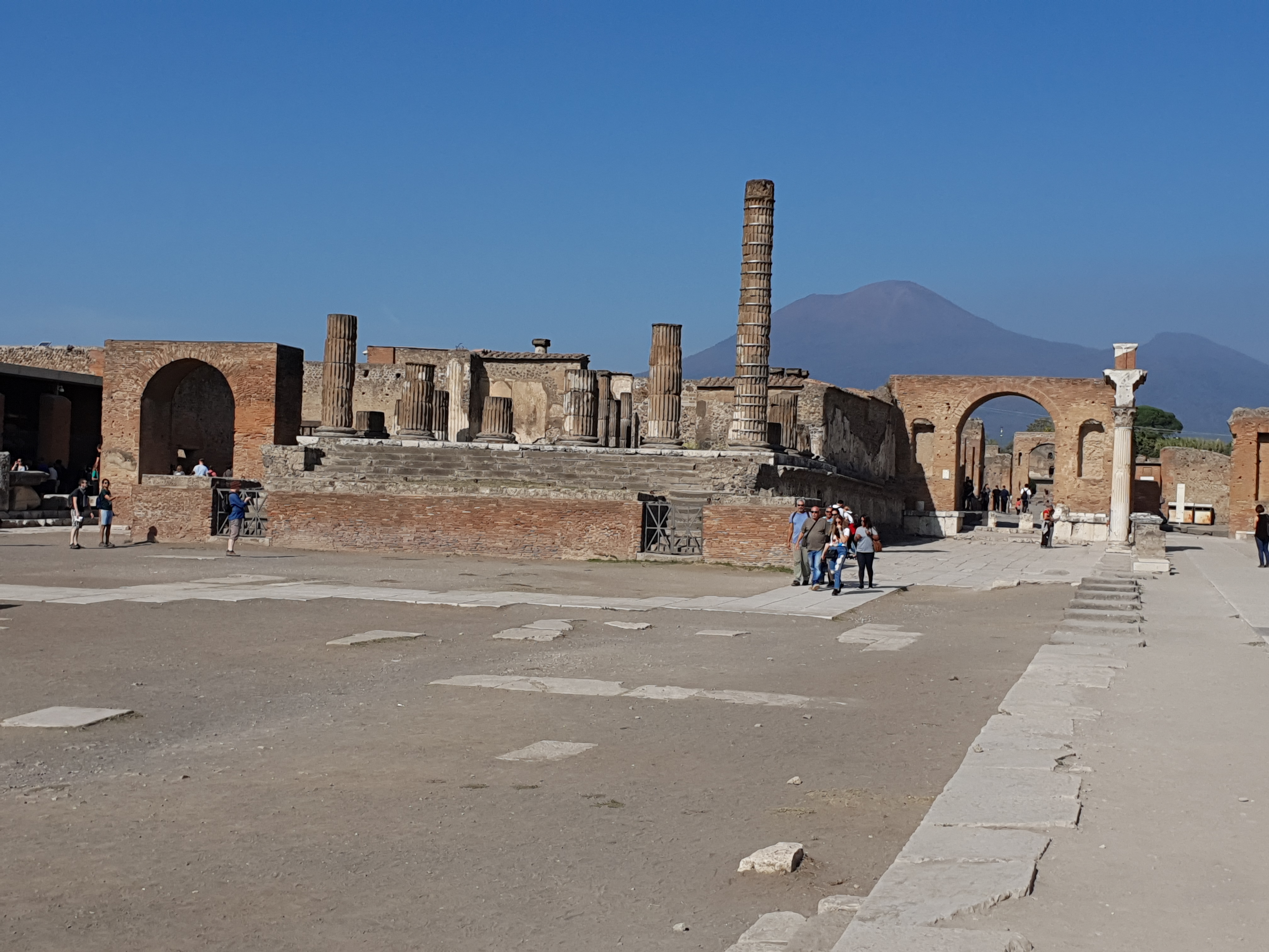 폼페이의 중앙광장입니다. 저 멀리 베수비오 화산도 보입니다.