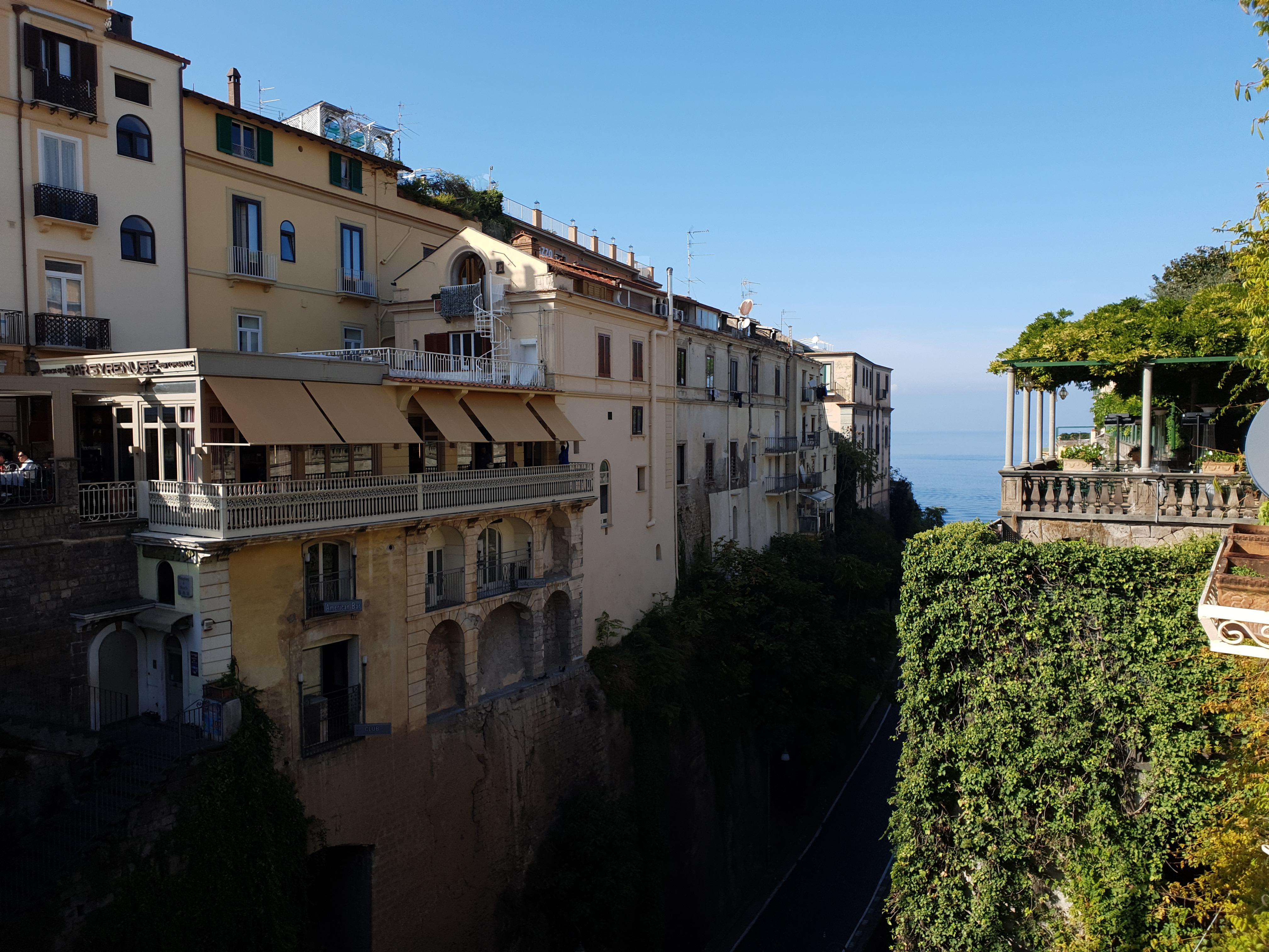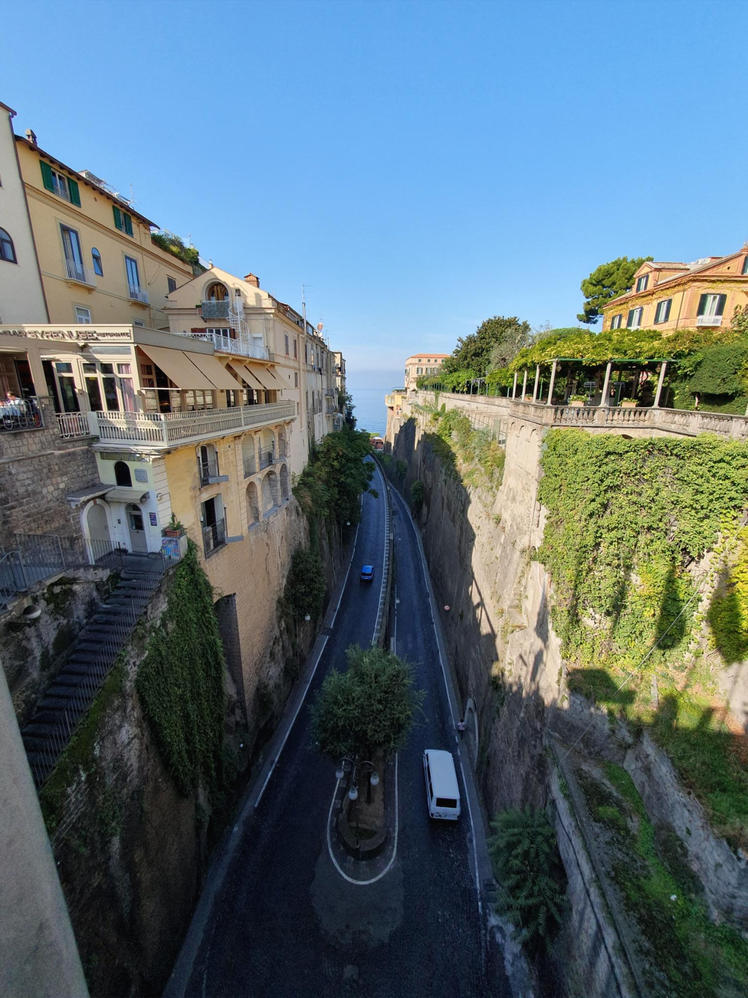 저 멀리 소렌토 항구가 있는 바다가 보인다.