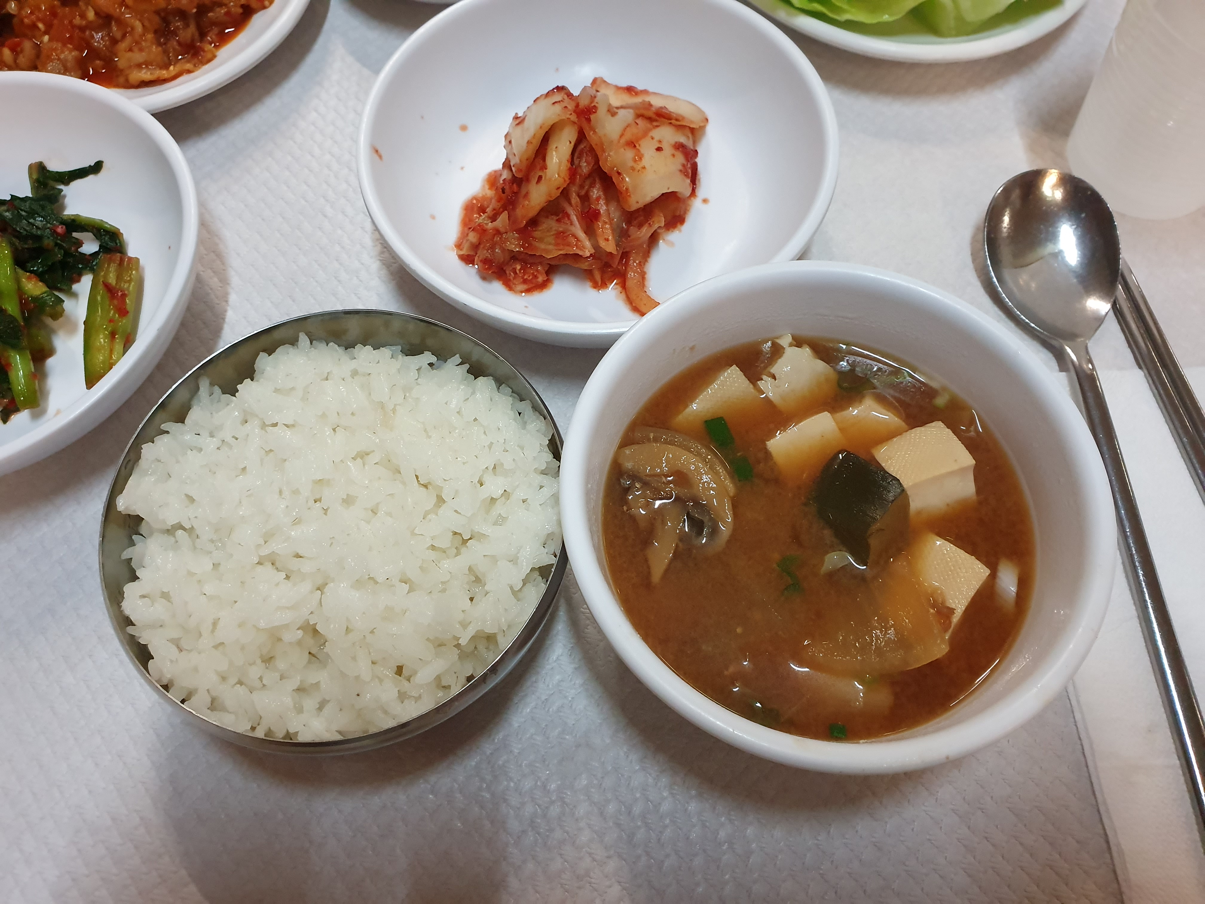 점심식사로 먹은 음식들. 중앙에 있는 음식은 해산물 튀김이었는데, 먹기 전에 사진을 찍는다는 것을 잊어먹었다. 허헣;;;