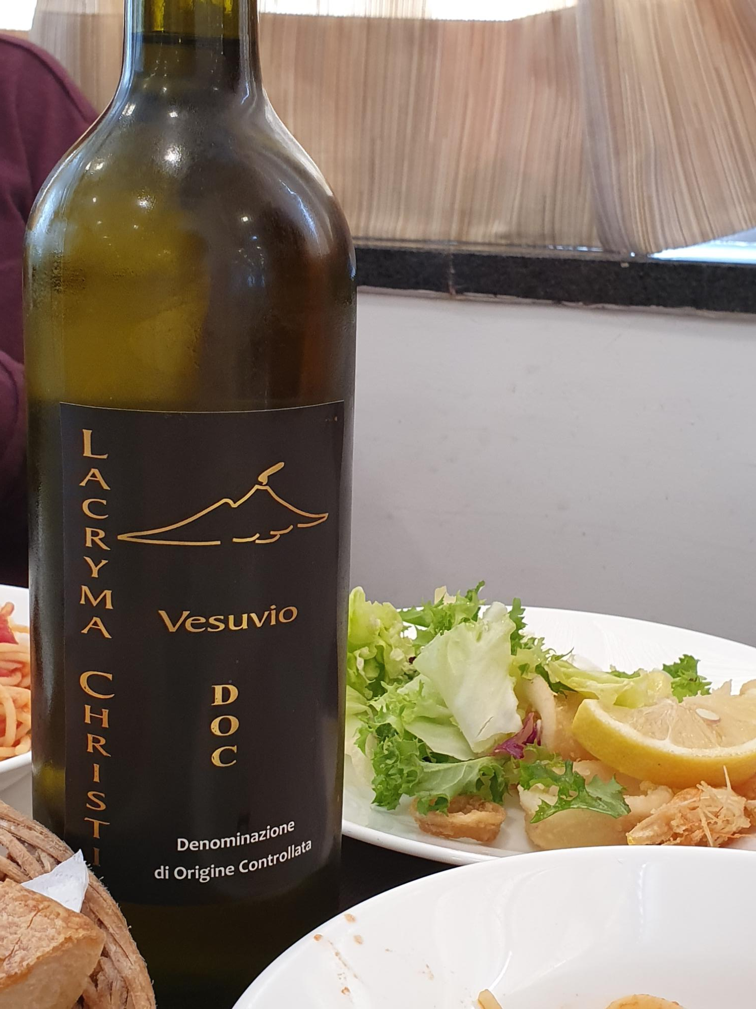 곁들여 마신 와인. 이 지역에서 나는 포도로 만든 와인이라고 한다. 와인 이름이 'Lacryma Christi', 그리스도의 눈물이다.