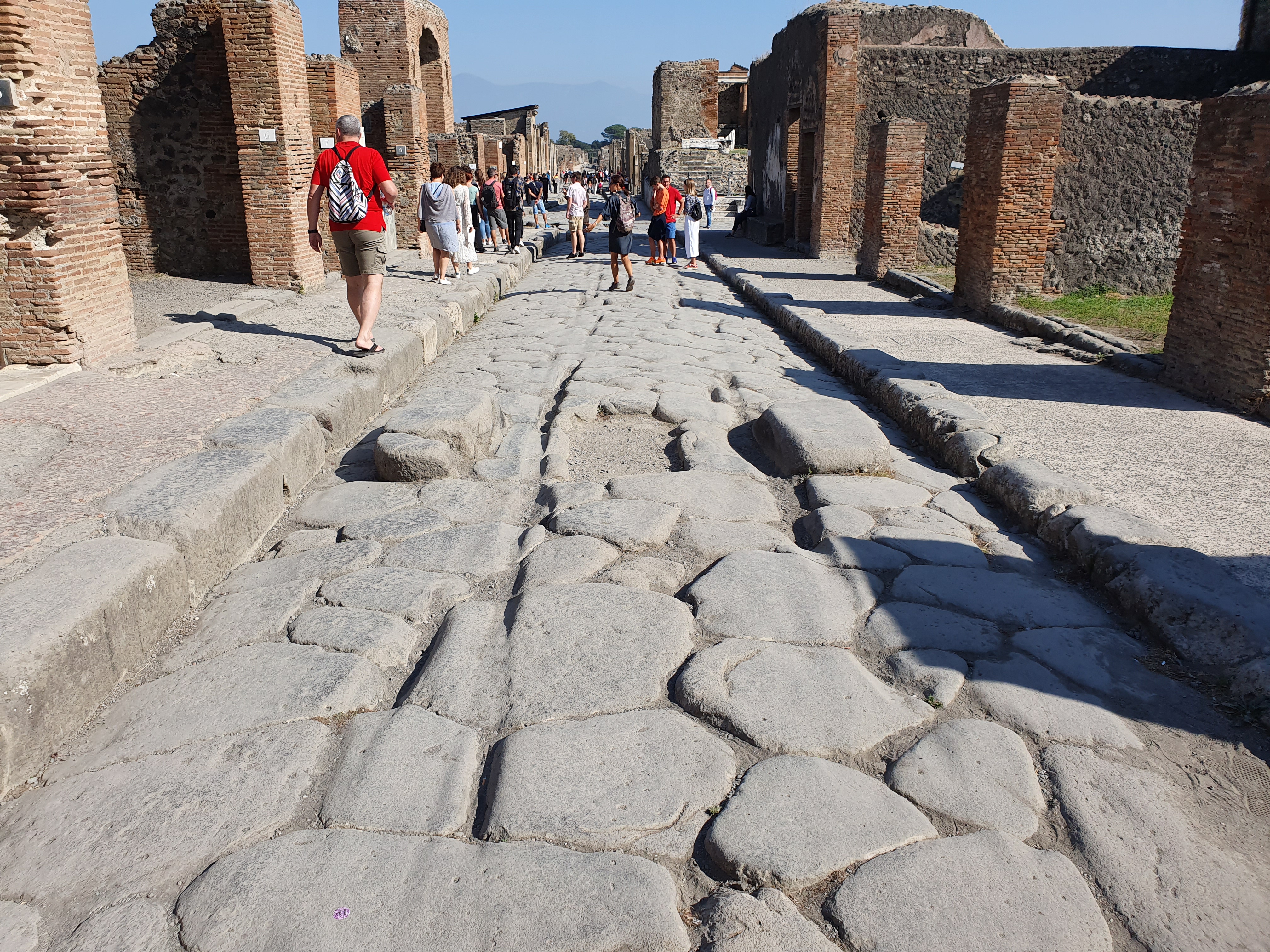 조금만 들어가면 폼페이 유적지를 관람할 수 있습니다. 가운데 길은 마차가 다니는 도로 양쪽 사이드 길은 인도의 역할을 했다고 합니다.