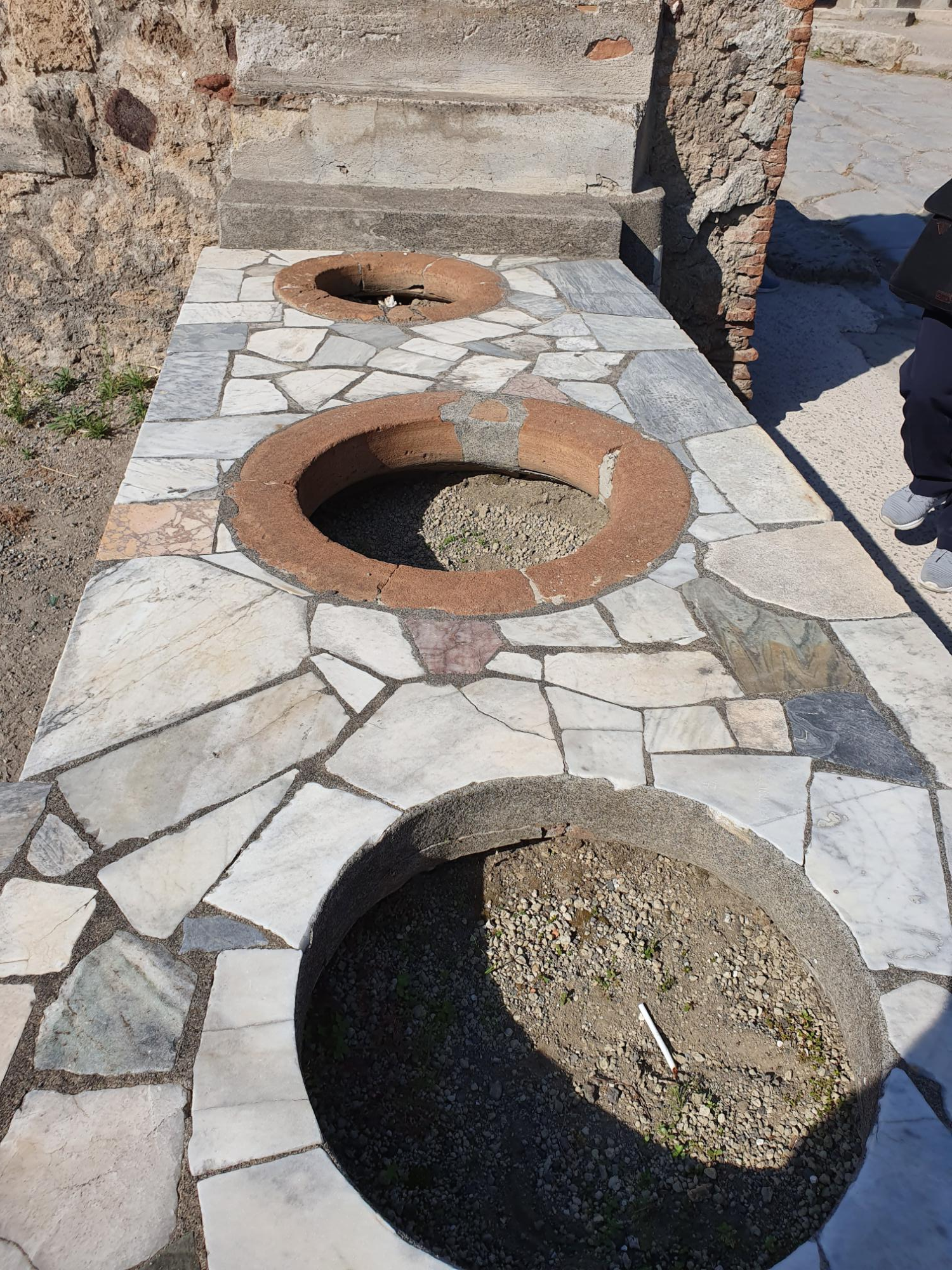 오른쪽 사진에 튀어나온 돌은 횡단보도+과속방지턱의 기능을 수행했다고 합니다. 과거의 로마인들의 수준을 다시금 느낄 수 있는 부분이라고 생각합니다.