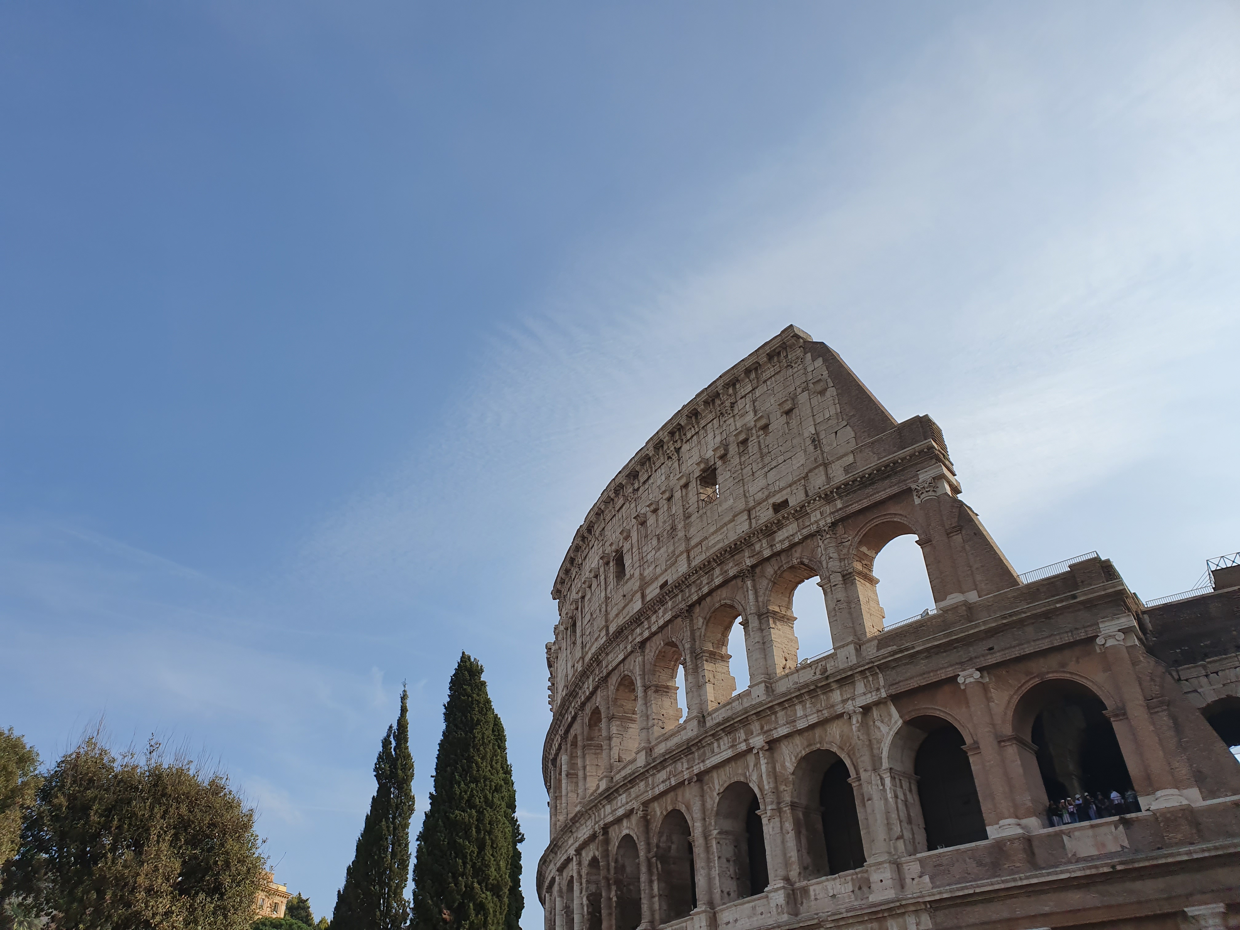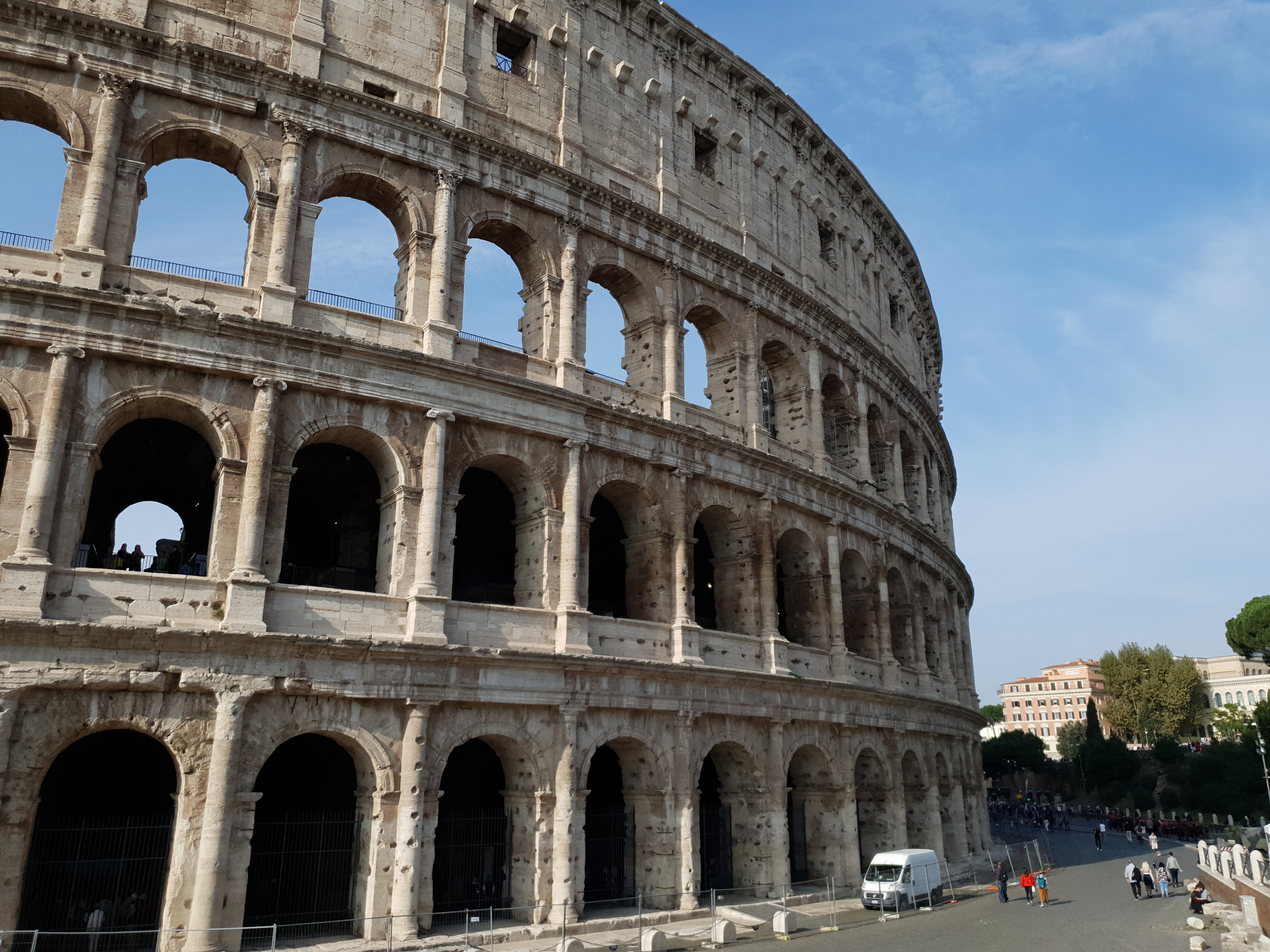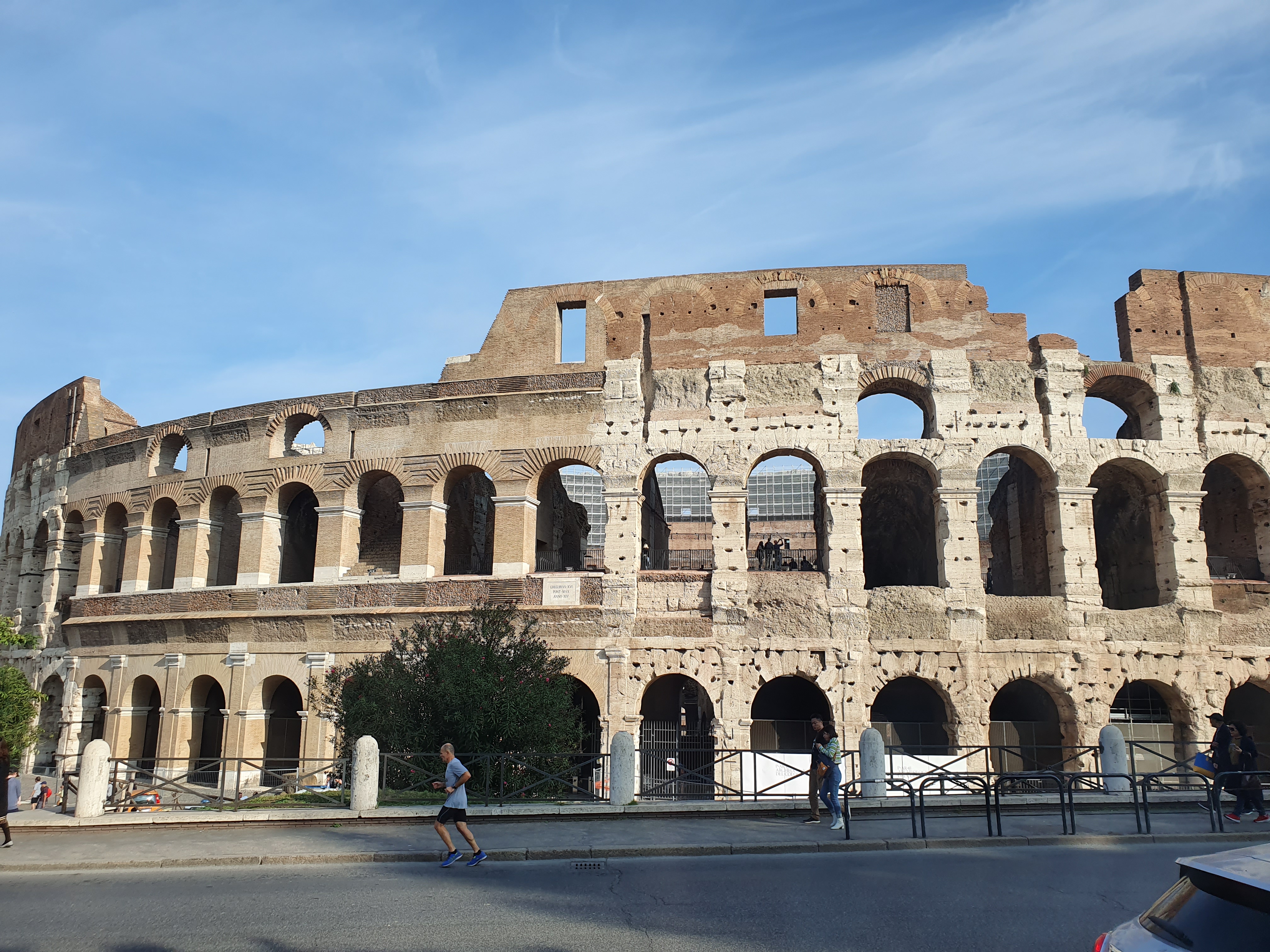 버스를 타고 이동하면서 찍은 로마의 사진입니다. 평일 아침임에도 불구하고 차가 꽤 막혀서 원래 계획했던 일정보다 늦게 목적지에 도착했습니다. 첫 번째로 방문한 곳은 로마의 상징 중 하나인 콜로세움입니다.