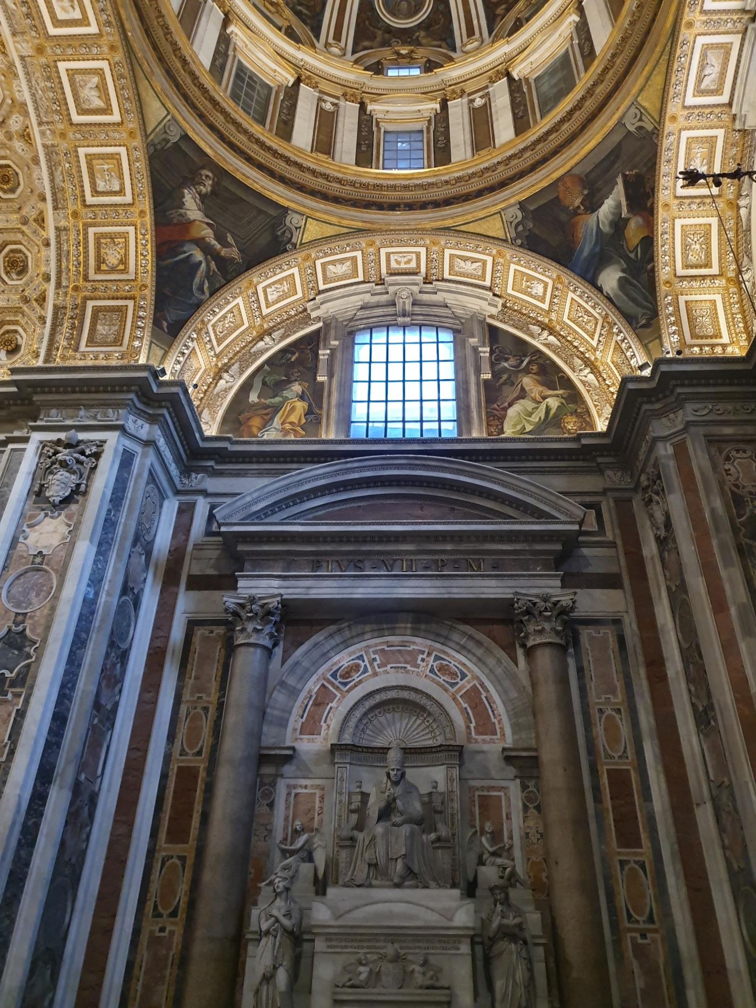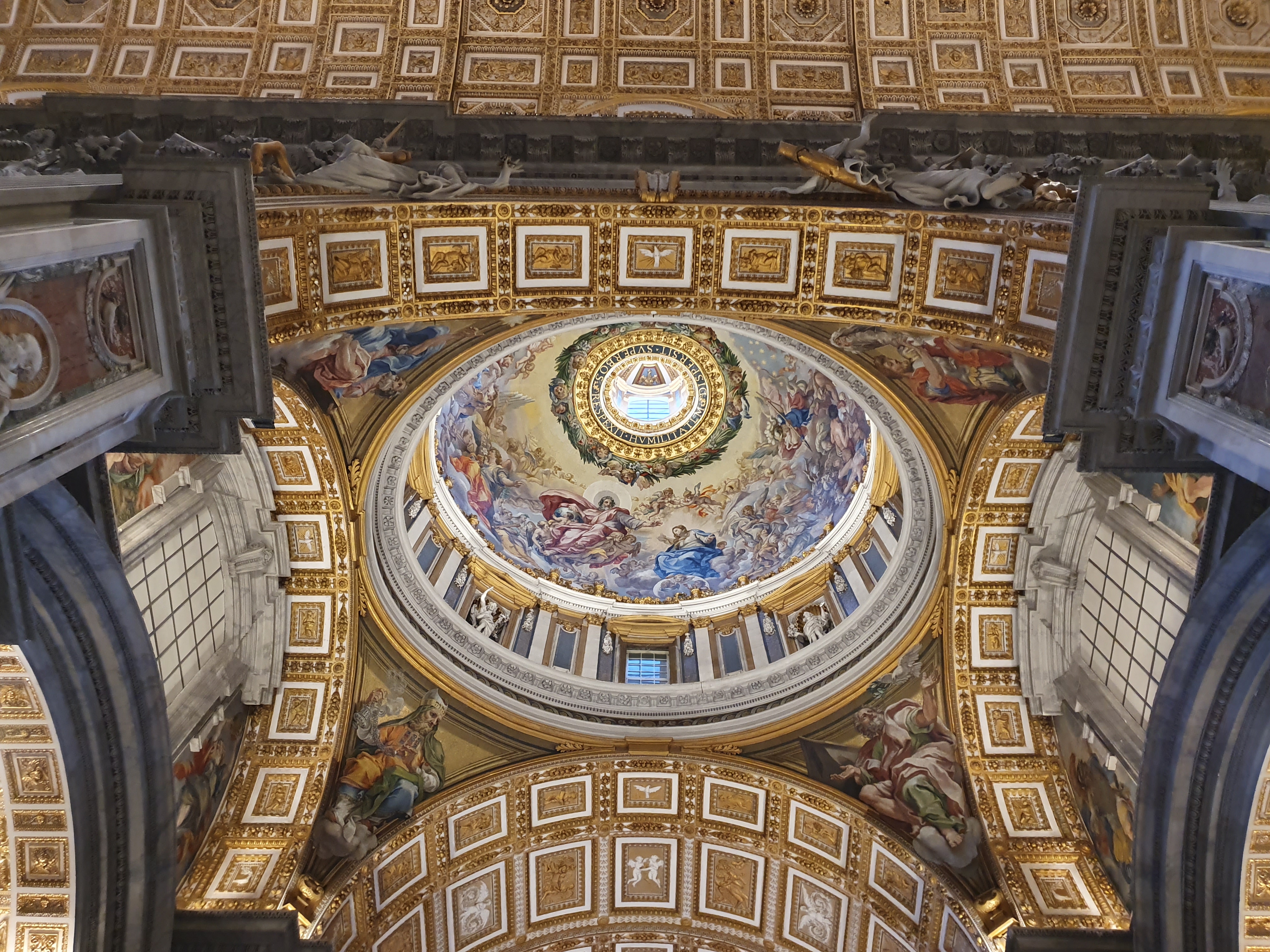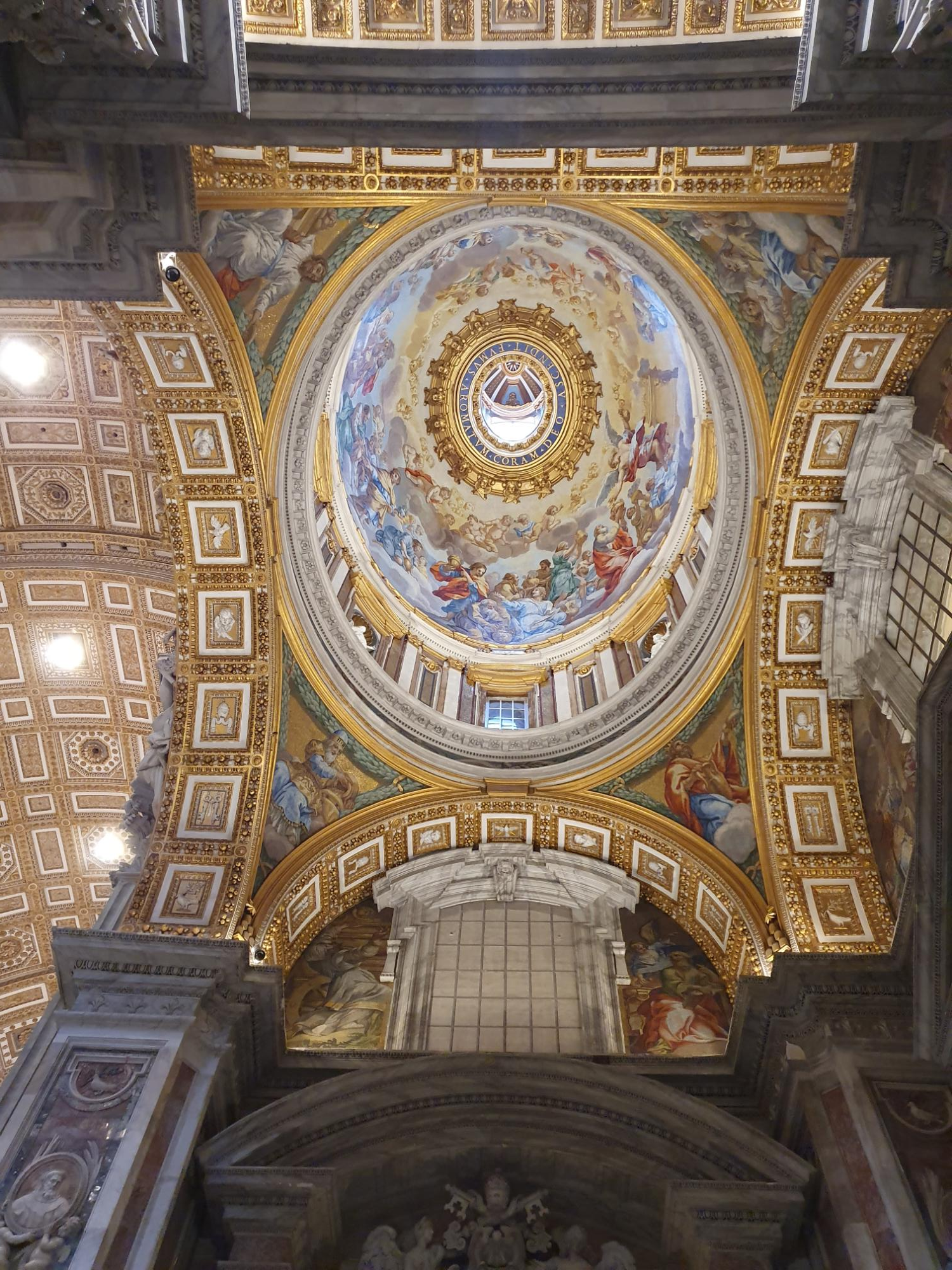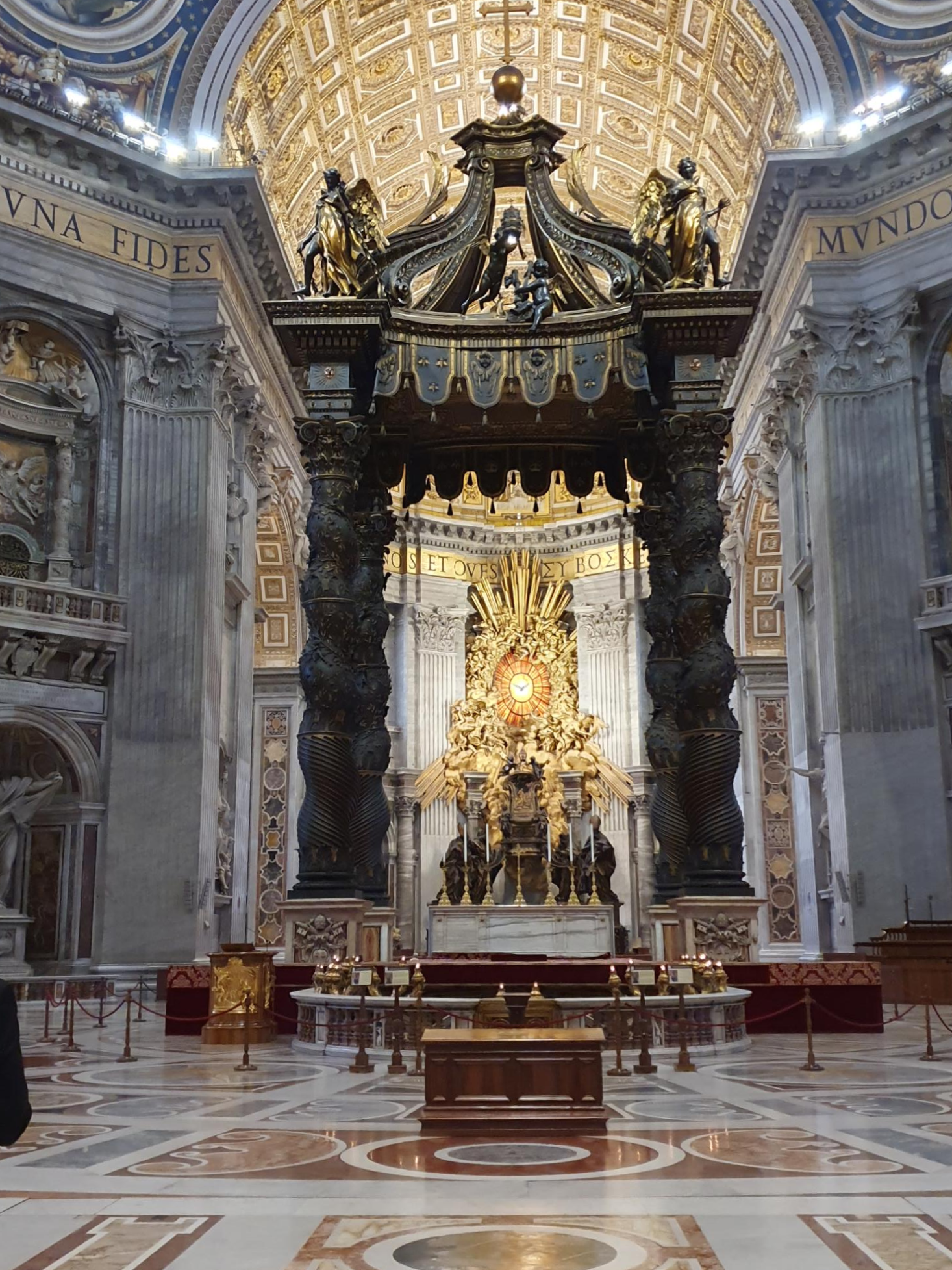 성 베드로 성당에 들어가면 엄청난 화려함, 그리고 생각보다 작아 보이는 것 같은 그 규모에 놀라게 된다. 작아 보이는 규모는 실제로는 착시현상으로 앞에 보이는 구조물의 높이는 무려 5m가량 된다고 한다. 직접 돌아다니다 보면 그 크기가 결코 작지 않음을 알 수 있다.