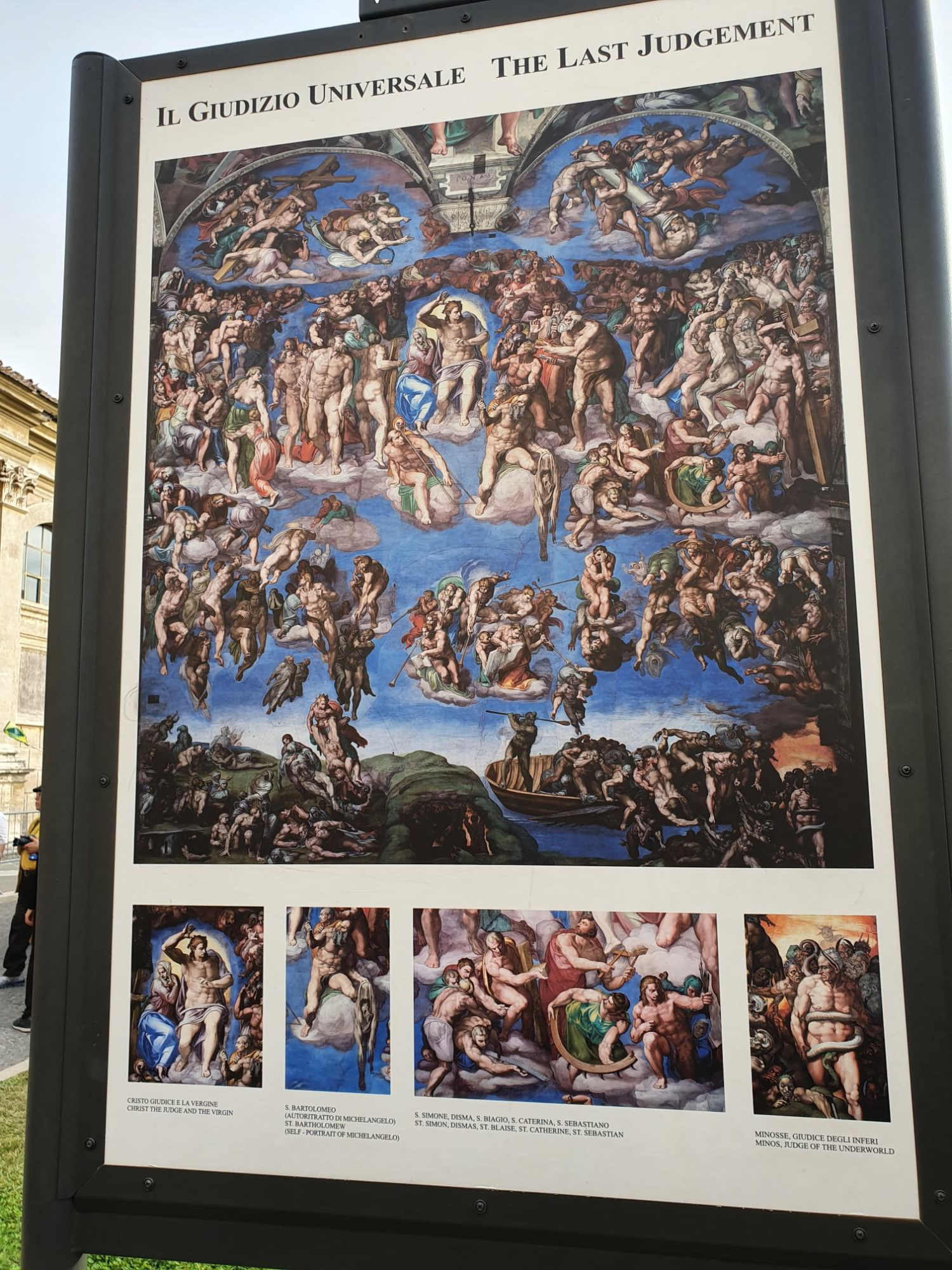 바티칸 미술관에 들어가기 전 시스티나 소성당에 있는 두 개의 위대한 그림, 미켈란젤로의 최후의 심판과 천지창조에 대한 설명을 들었다. 그 자세한 설명은 내가 서술하는 것보다는 다른 매체들이 훨씬 정확하게 전달할 테니 생략.
