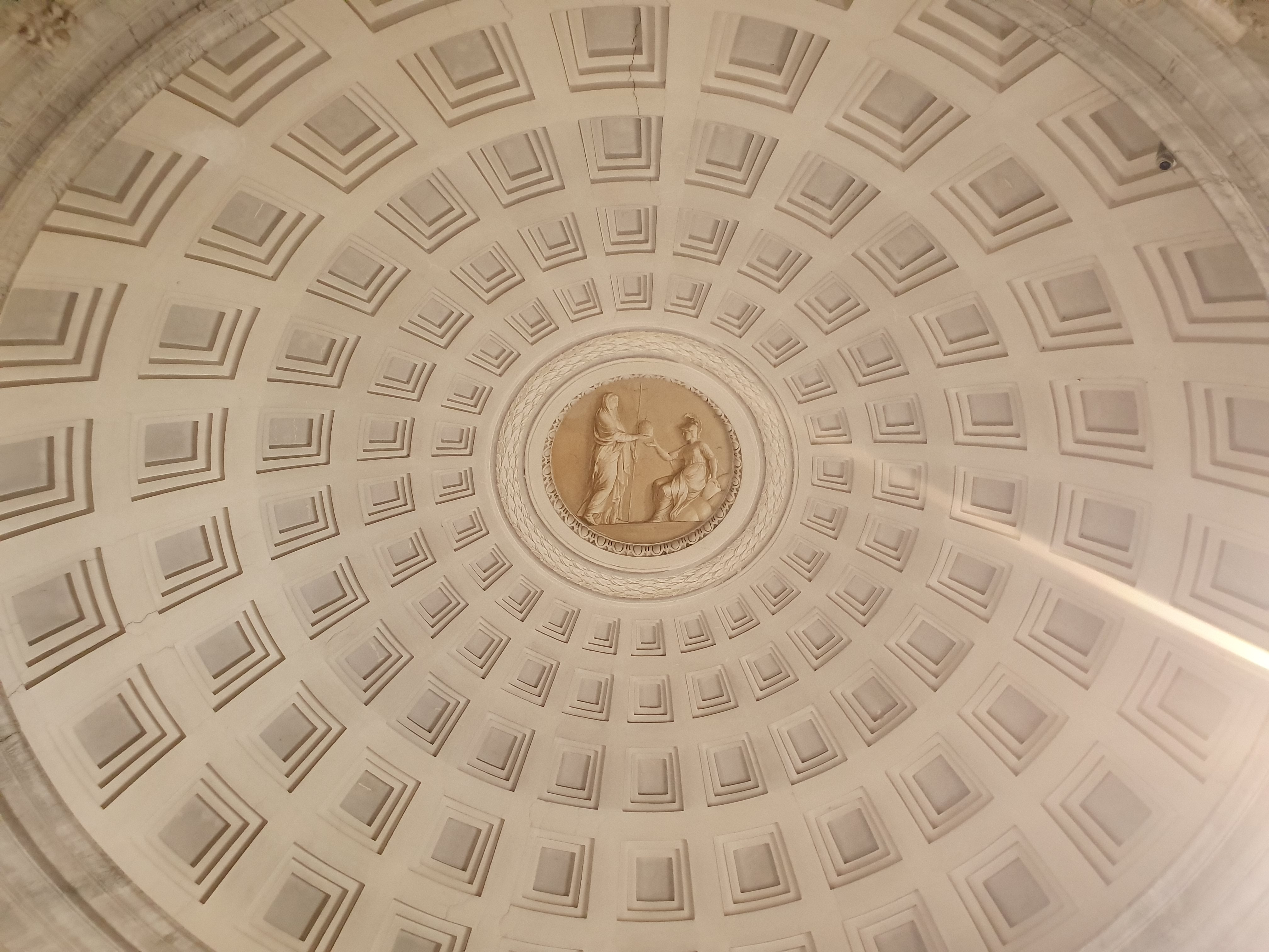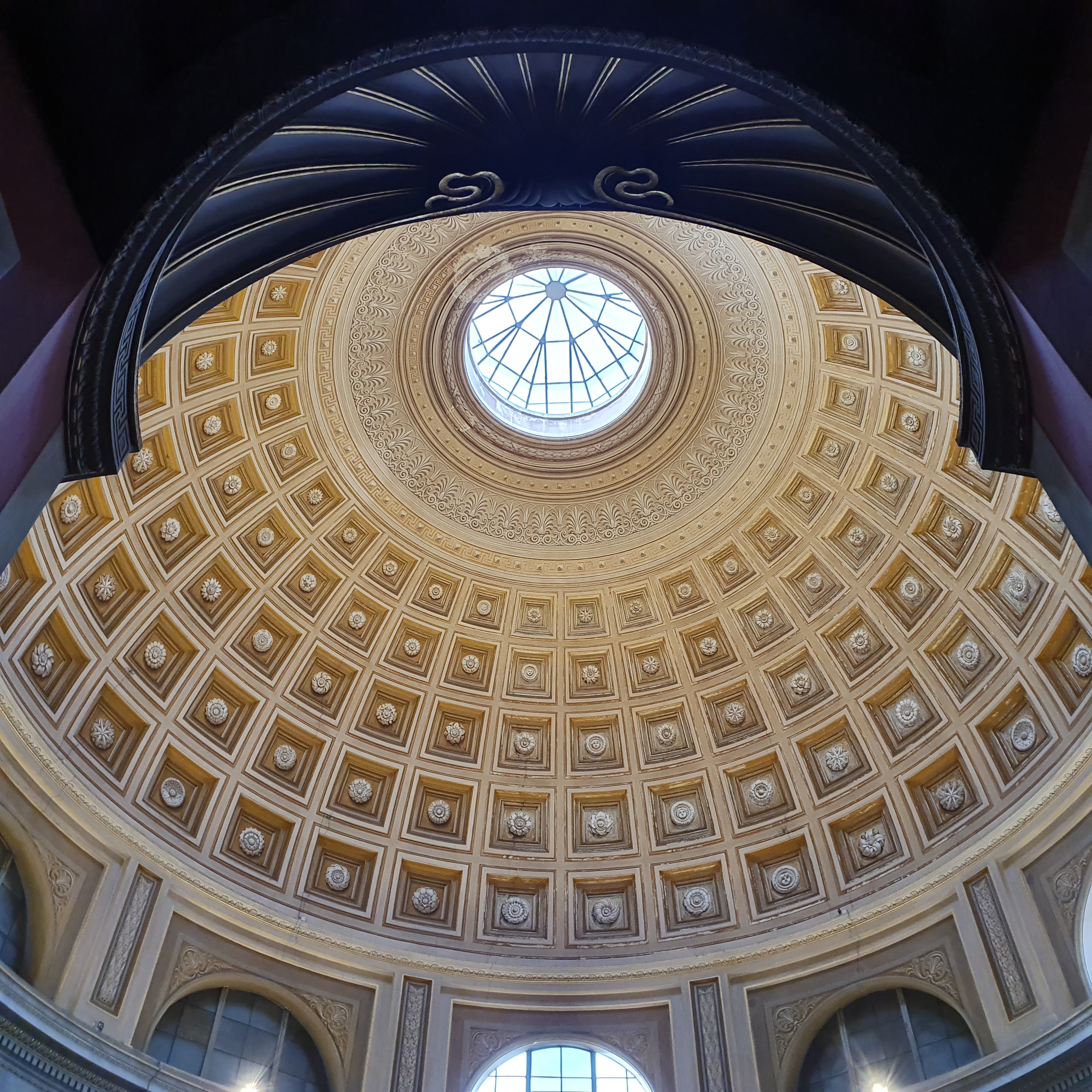 돔형 천장. 천장 중앙에도 장식이 되어 있다. 조금만 이동하면 '팔각 정원'에 전시되어 있는 수많은 고대 조각상들을 보게 된다.
