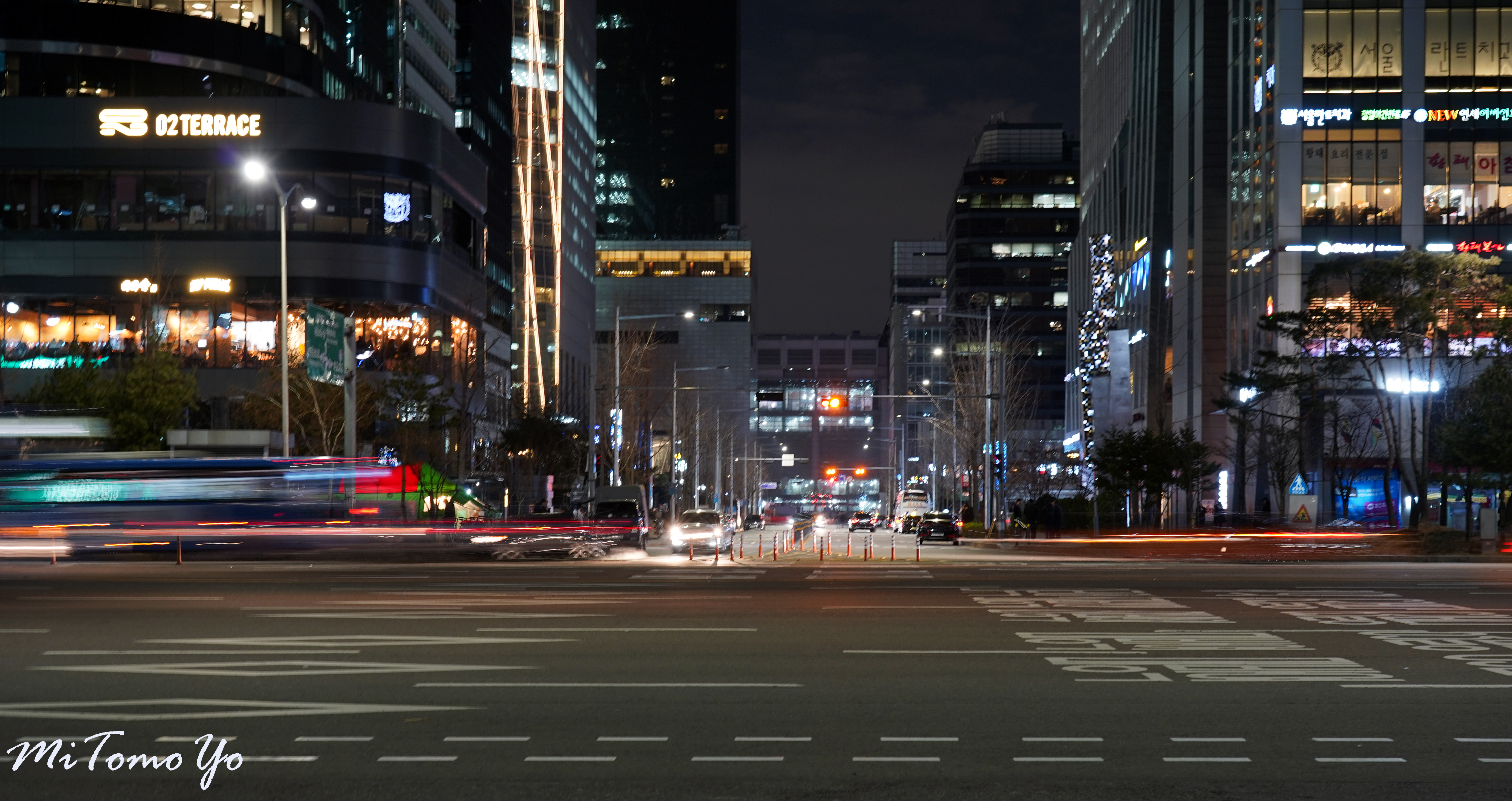 마침 장노출 사진을 찍기 괜찮아보이는 장소가 눈에 보여서 찍게 되었습니다. 일반적인 퇴근 시간이 한참 지났을 때여서 차들이 많이 다니지 않아 사진이 조금 휑하게 나온 것이 아쉽습니다.