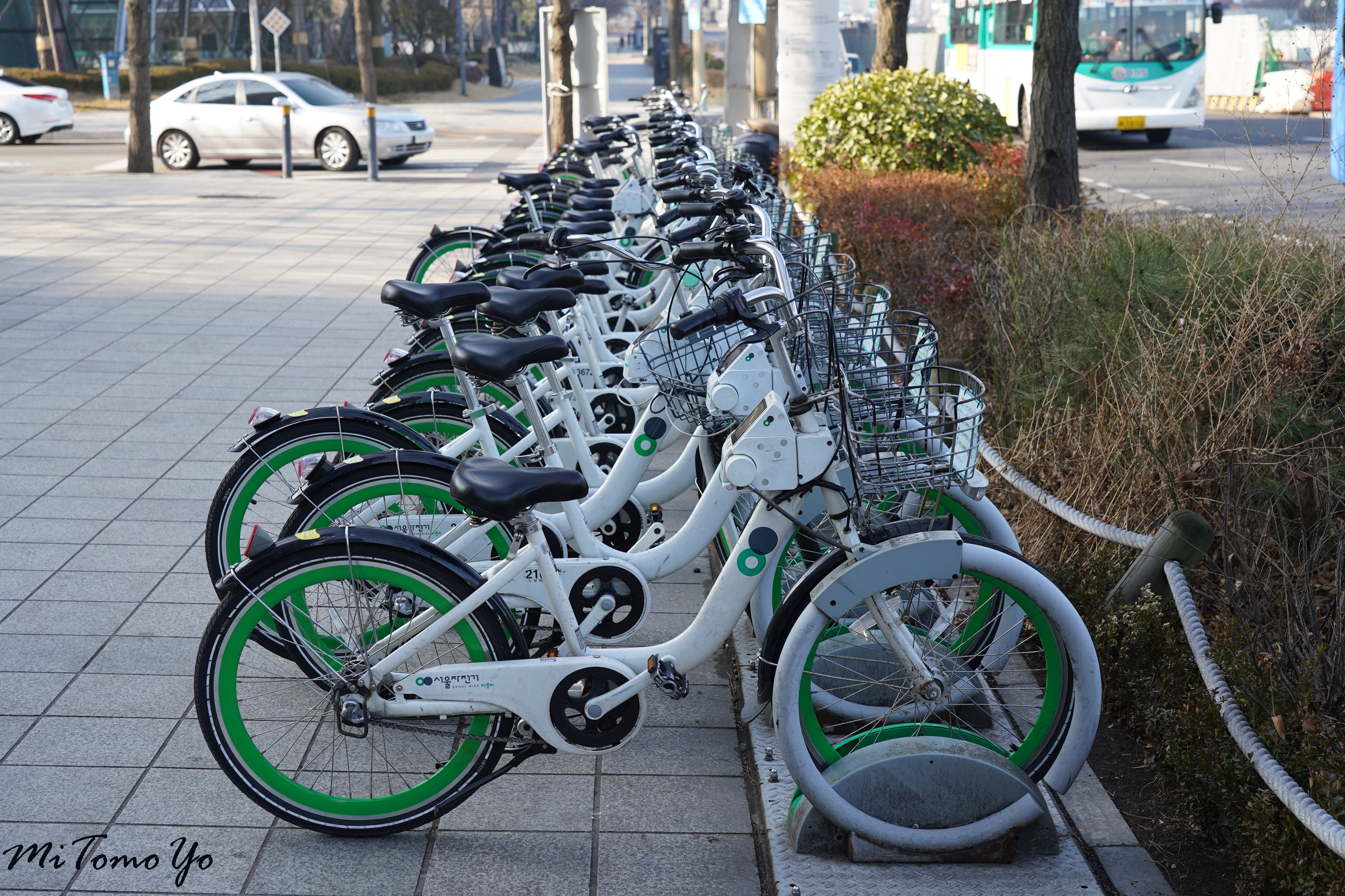 야간근무를 마치고 잠깐 근처를 돌아다니면서 찍은 사진입니다. 출근시간 이후여서 그런지 따릉이가 전부 주차가 되어 있었습니다.