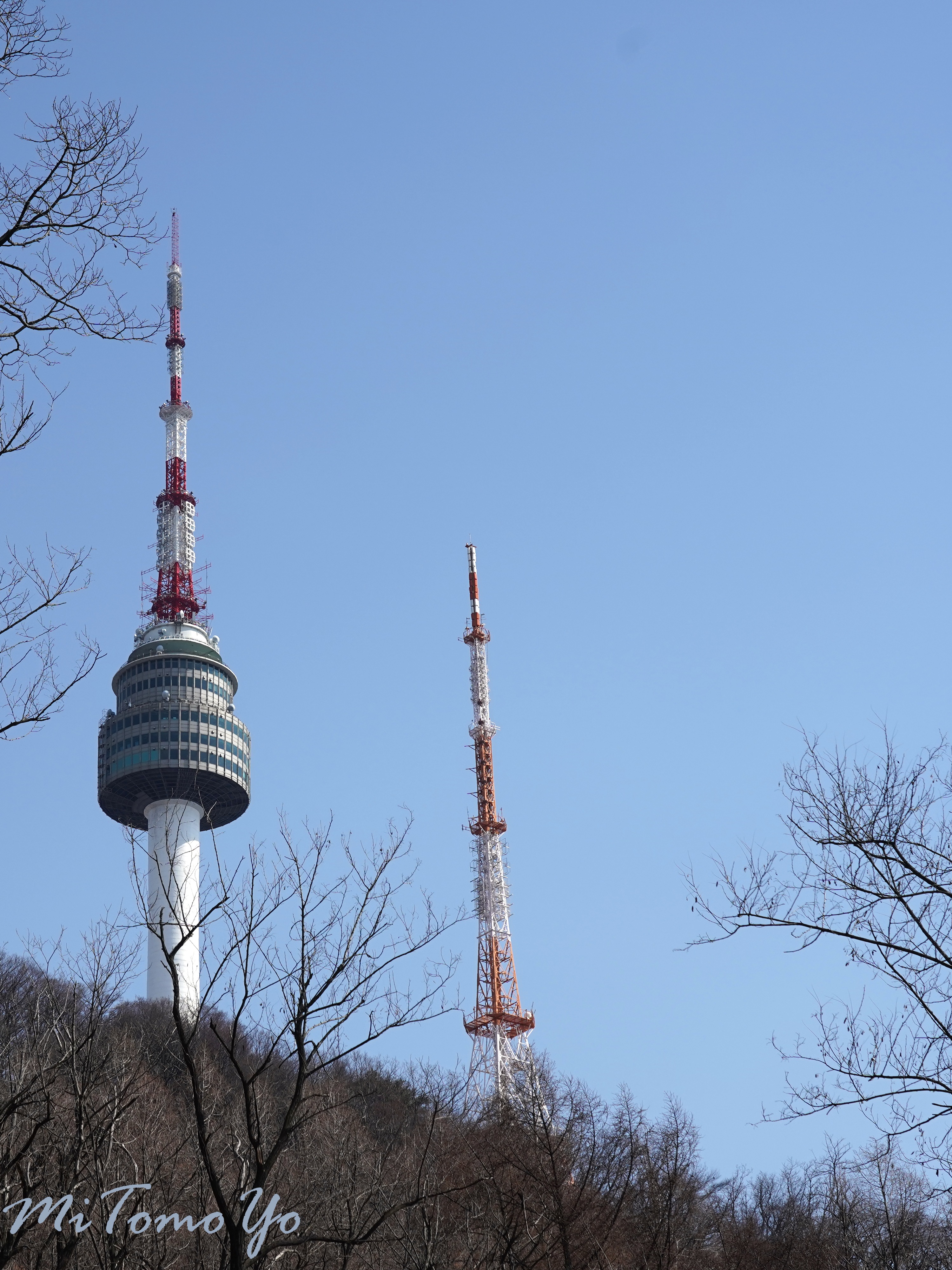 올라가는 길에 찍은 사진. 아직 나뭇잎이 하나도 없어서 올라가는 중에는 찍을만한 곳이 거의 보이지 않았다. 남산 타워 같은 경우엔 막상 올라가면 그 모습을 담기 어려울 것 같아서 올라가는 중간에 잘 보이는 곳에서 찍었다.
