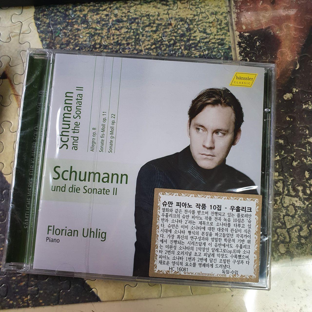 슈만이 피아니스트를 꿈꿨으나 손가락을 다쳐서 작곡가가 되었단 얘기는 꽤 알려져있다. 그 때문인지 상당히 많은 수의 피아노 독주곡을 남긴 편인데, 그동안 그가 남긴 피아노 독주곡은 거의 들어본 기억이 없다. 듣기로는 슈만의 피아노 곡들이 상당히 까다롭기로 유명하다고 한다. 여튼 그 때문에 마음에 드는 구성의 음반을 찾기 힘들었는데, 마침 플로리안 울리히란 피아니스트가 피아노 곡집을 Hanssler를 통해서 발매를 한 것을 발견해 피아노 소나타 1,2번이 수록된 음반과 '대위법'이란 주제가 붙은 음반을 하나 구입했다. 마음에 들면 시리즈의 다른 음반도 구입해 볼 계획이다.