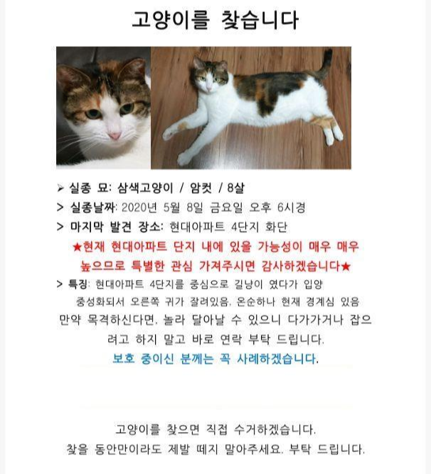 | 이동장을 탈출한 고양이 띠띠를 찾기까지 116시간 - ② (3) | 2020.05.30 |