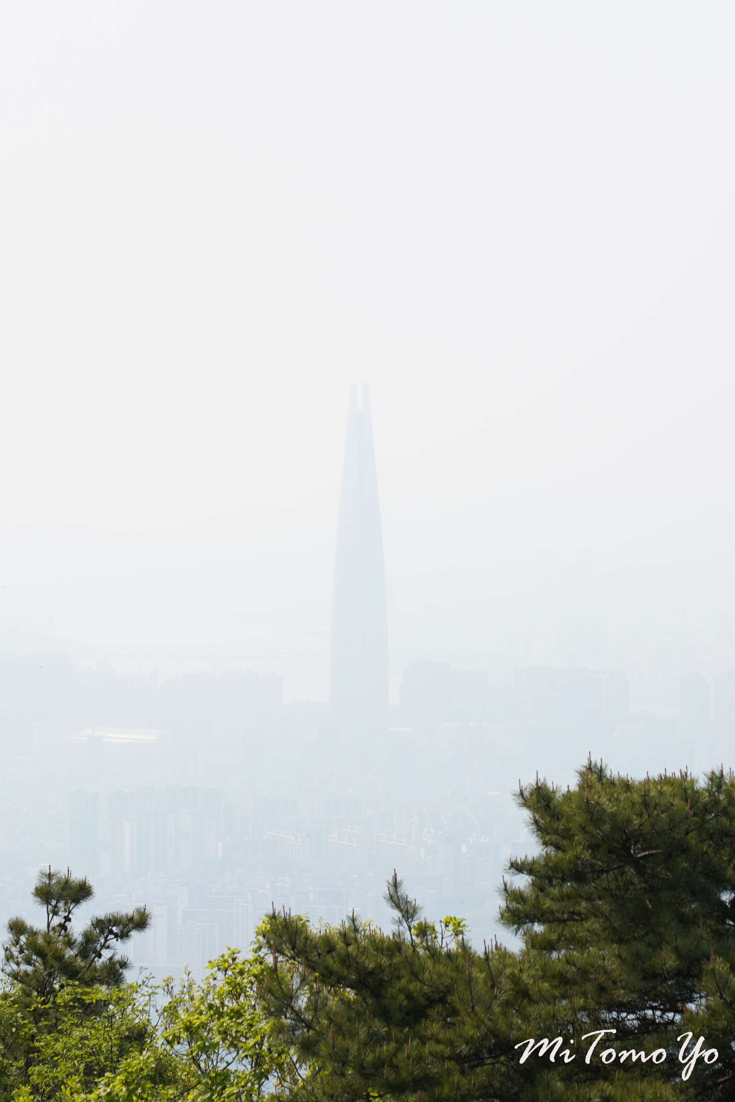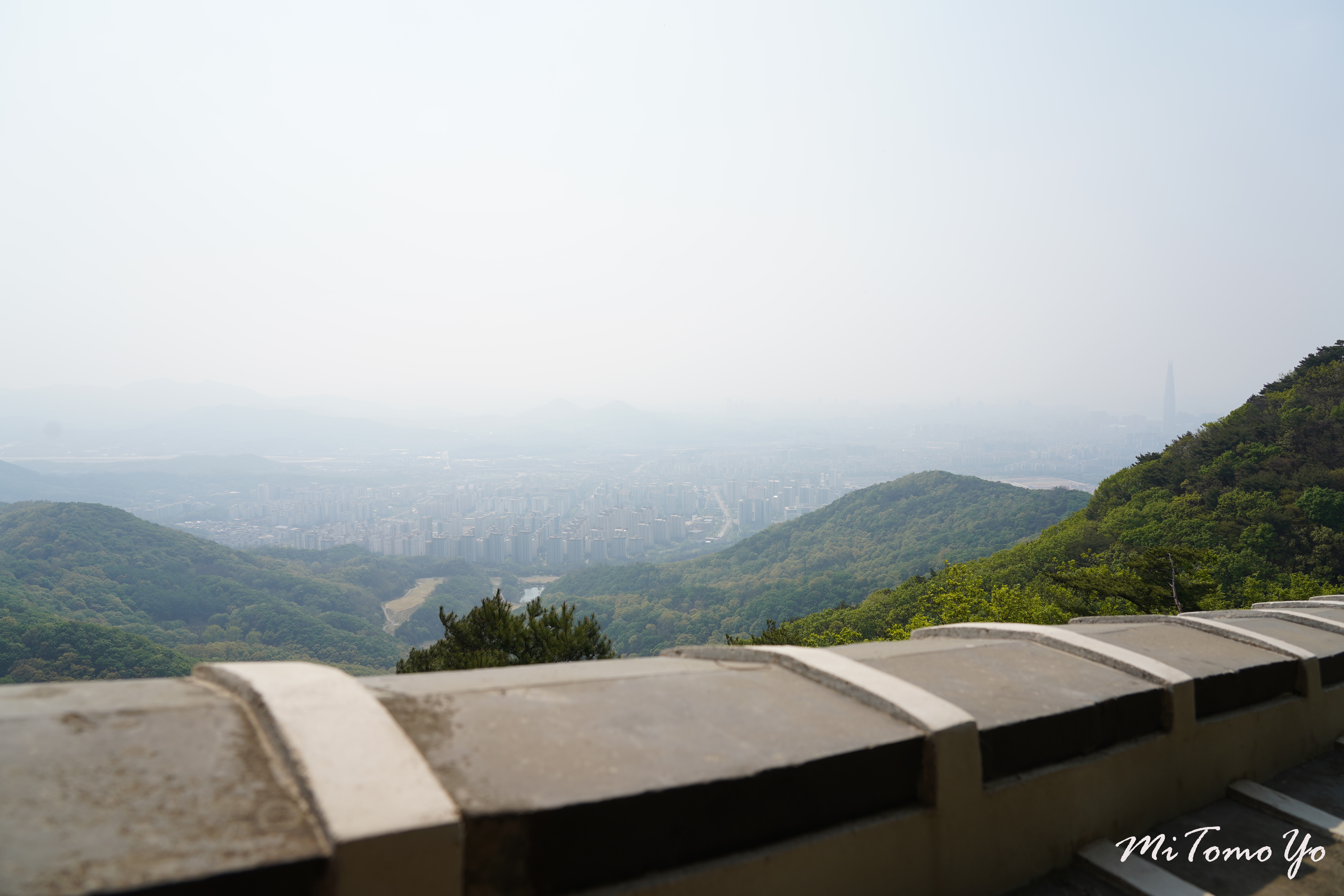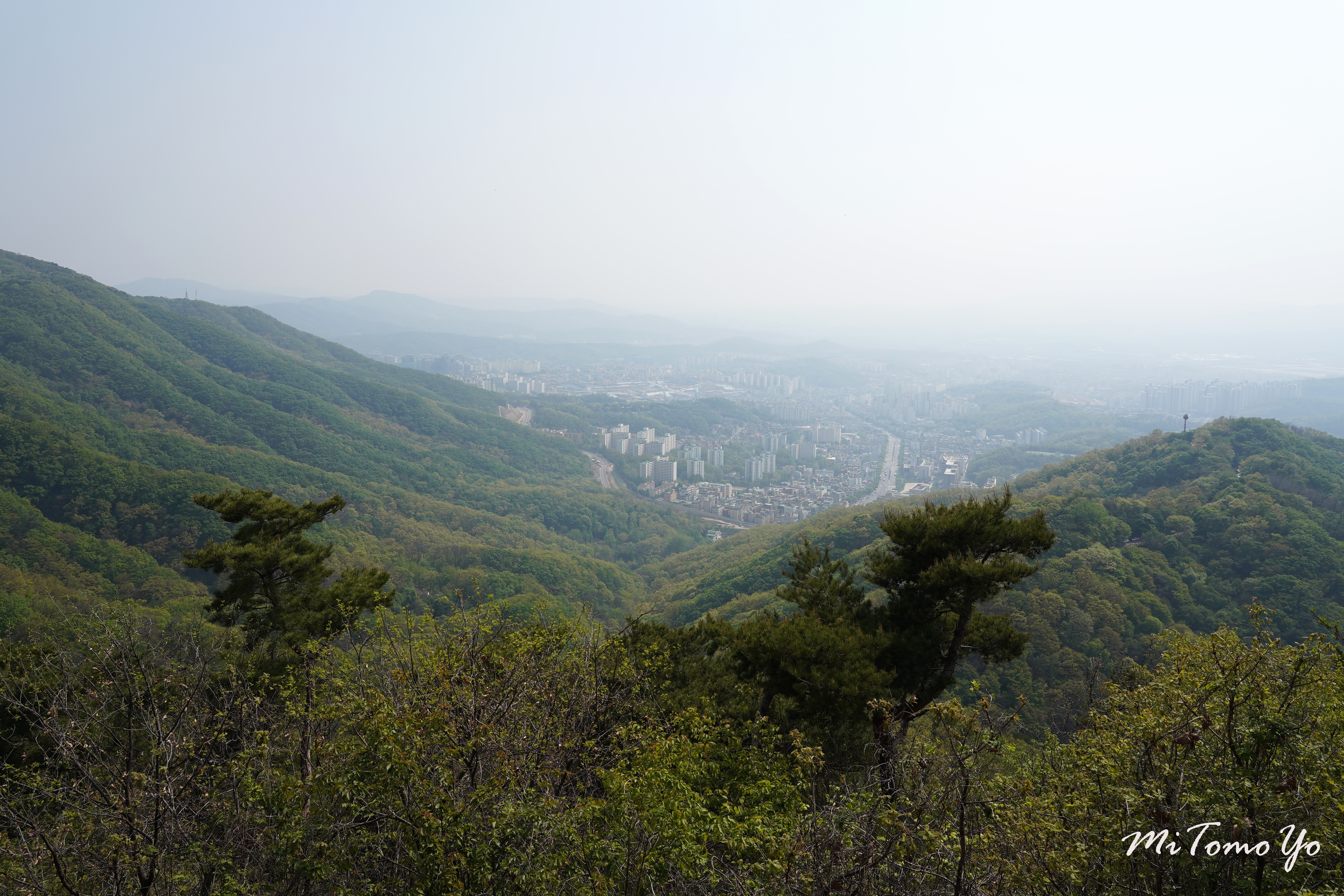 미세먼지 '흐림' 덕분에 산 위에서 보이는 풍경이 뿌옇게 보였다.