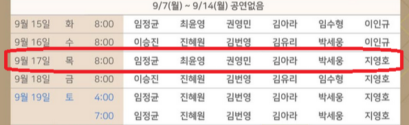 배우와 관련된 얘기도 해야할 것 같다. 이날 캐스팅은 아래 사진과 같았는데, 다들 연기를 잘한단 생각이 들었다.