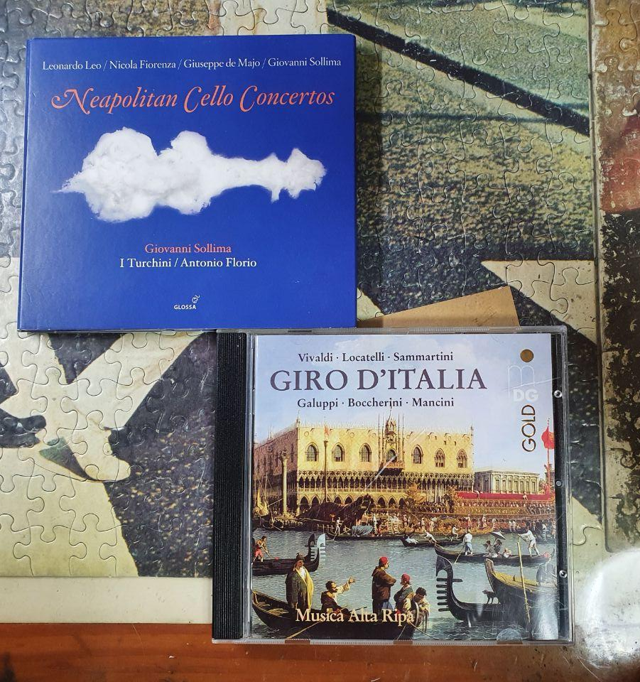 위의 가브리엘리의 작품에 이어서 이탈리아 바로크 시대 작곡가들의 작품집이다. 지난 번에 구입한 적이 있었던 나폴리 바이올린 작품집에서 봤었던 작곡가의 이름도 들어있다. 독주악기로써의 첼로의 지위가 크지 않았던 시절 작곡된 협주곡들을 들을 수 있을 것 같다. 우측의 음반은 17세기 활동했던 이탈리아 작곡가들의 다양한 편성의 곡들이 수록되어 있다. 여담으로 표지의 그림은 베네치아인 듯 하다.