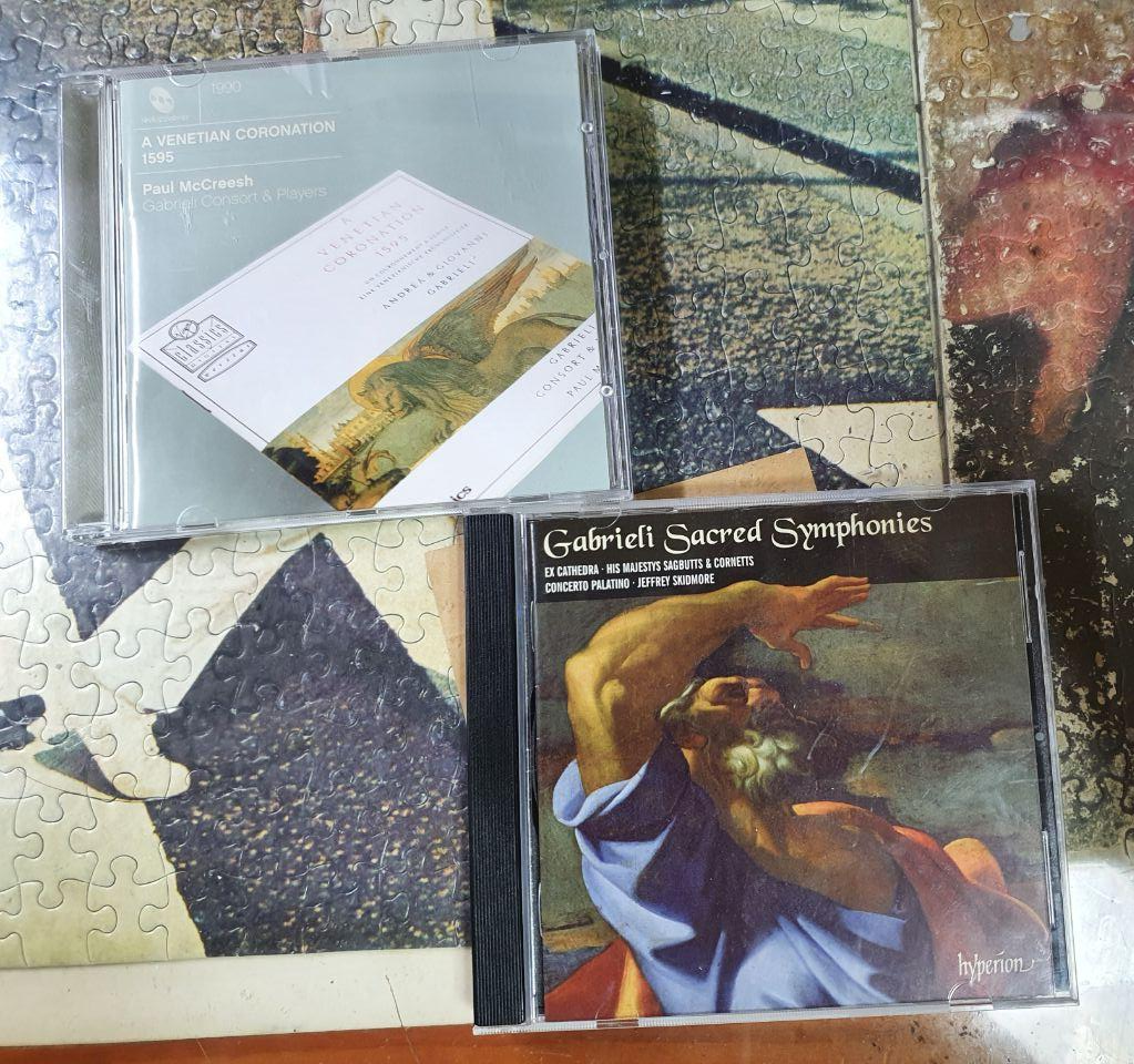 베네치아에서 활동하던 음악가 지오반니 가브리엘리의 음반 2장. 정말 어렸을 때 있었던 학습만화에서 가브리엘리의 신성교향곡을 듣고 감탄한 컷을 보고 '이게 대체 무슨 음악일까?' 궁금했었는데 이제서야 들어볼 수 있게 되었다.