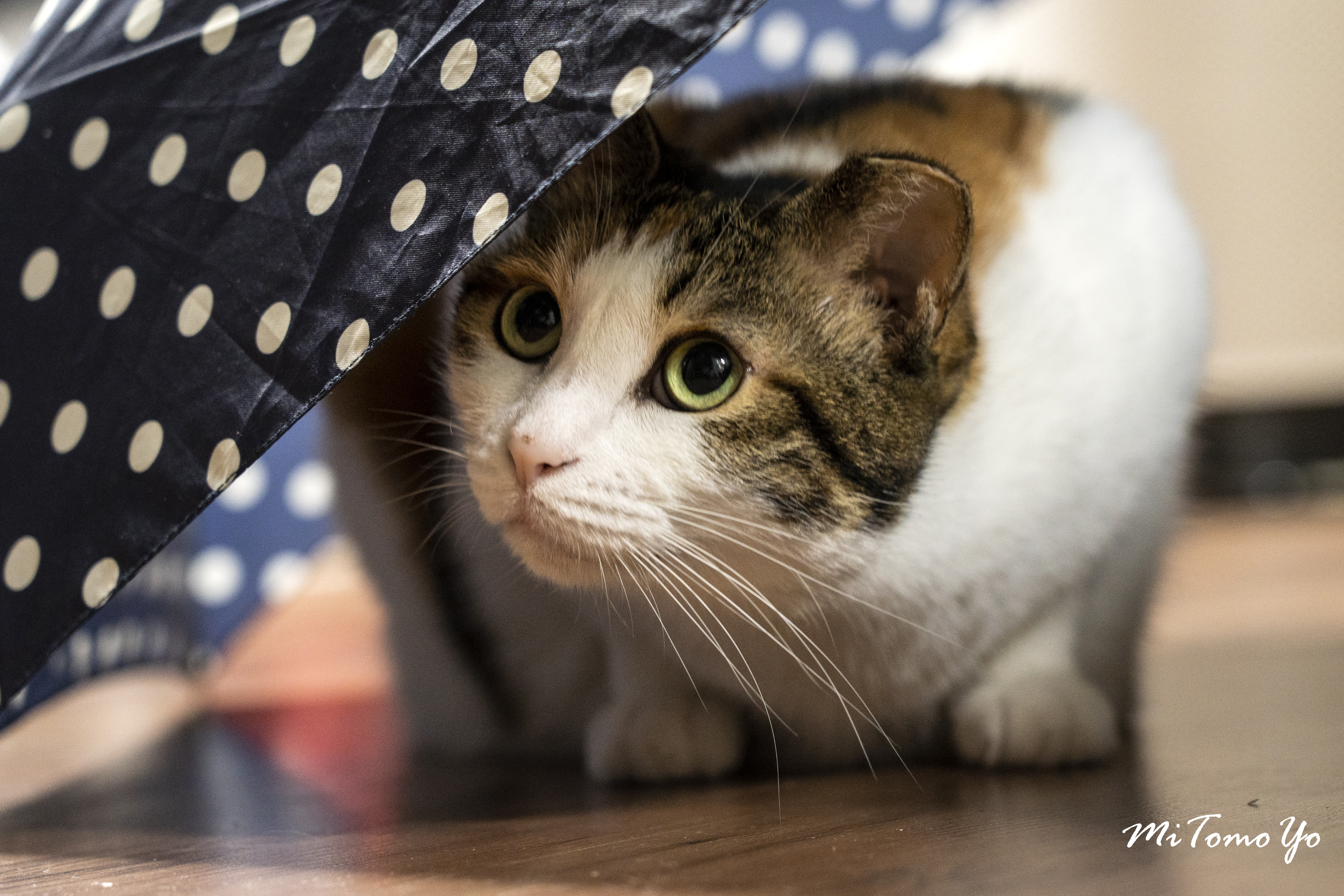 초점이 잘 맞은 사진은 아니지만, 우산 속에서 호기심에 찬 눈빛으로 무언가를 바라보고 있는 모습이 너무나 귀여워서 선정했다.