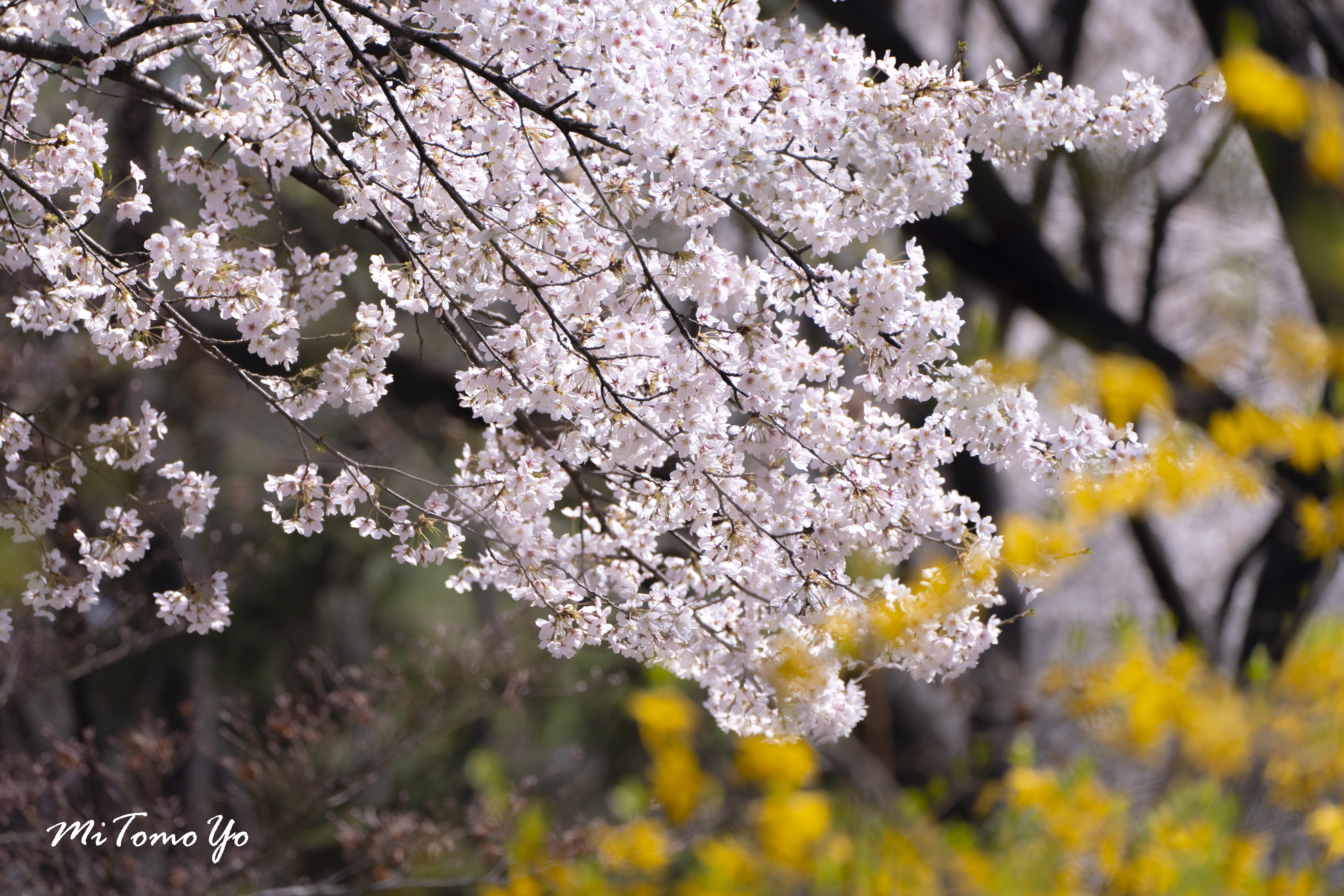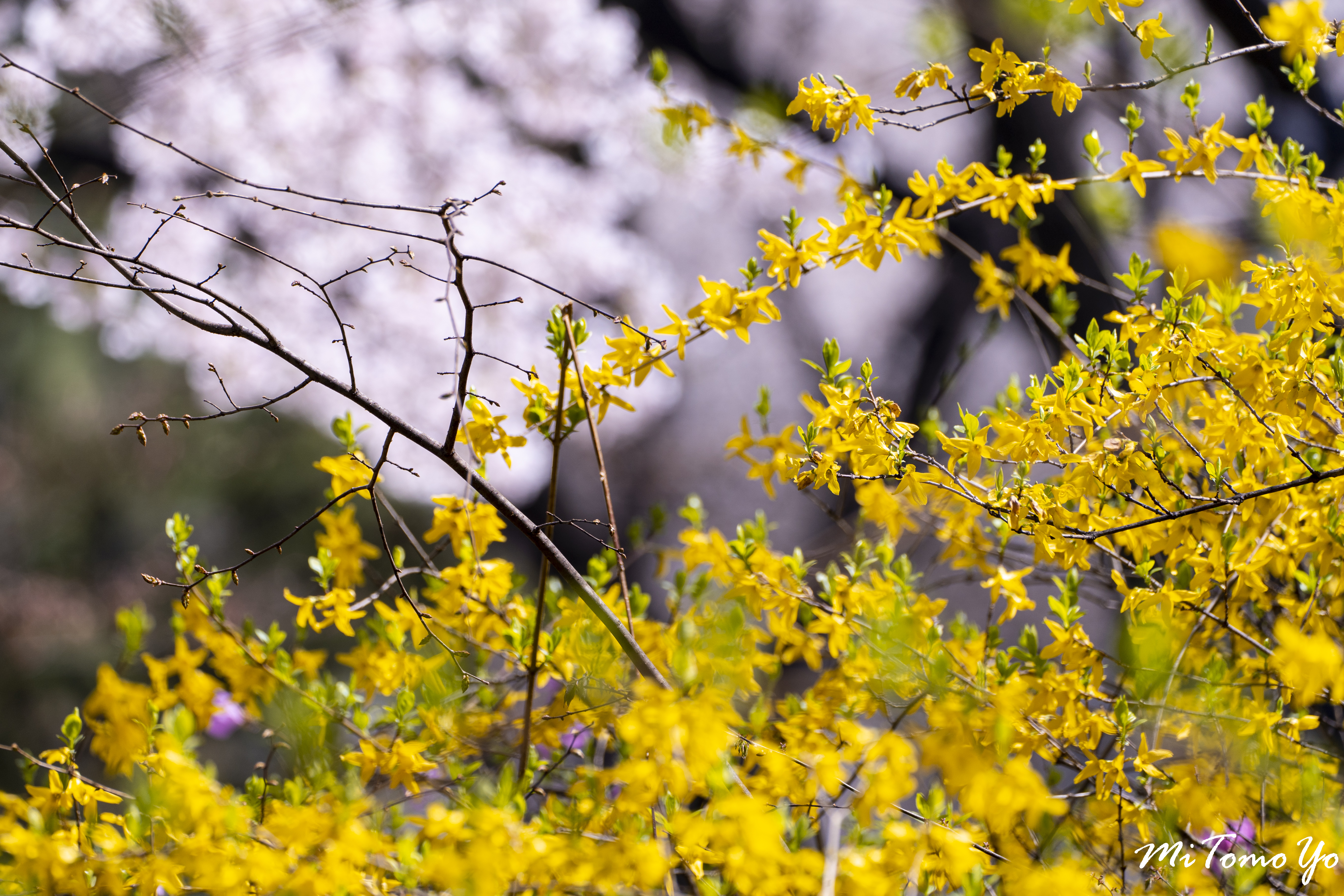 초점을 달리해서 찍은 두 장의 사진입니다. 벚꽃과 개나리가 만들어내는 색의 대비가 재미있게 느껴져서 시도해본 사진입니다.