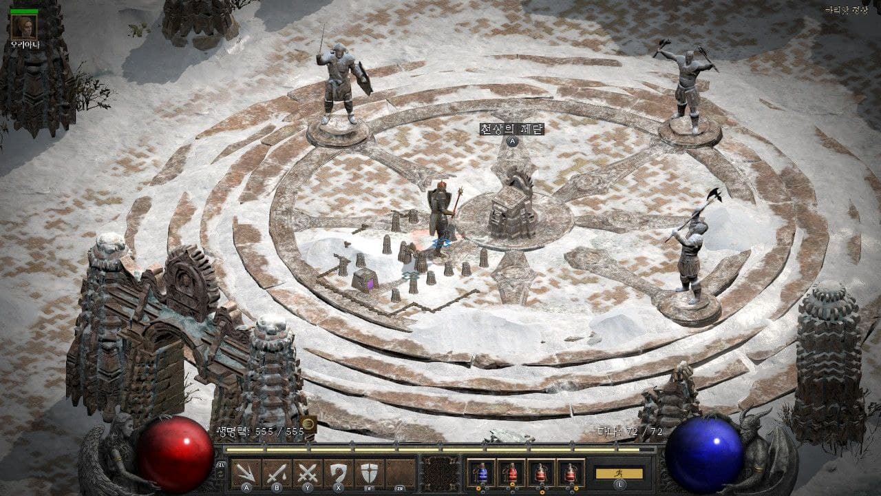 패드로 플레이를 하는 것이, 처음에는 익숙하지 않아서 불편하단 느낌도 들었지만 또 익숙해지니깐 나름대로 괜찮다는 생각도 들었다. PC도 단축키를 이용해서 스킬을 변경하는 것이 가능하지만, 개인적으로 이 부분은 콘솔 쪽이 더 편하단 느낌이 들었다. 아쉽게 느껴지는 부분은 shift+우클릭으로 용병에게 물약을 줄 수 있는 PC판과는 다르게 콘솔 쪽에서는 그런 기능이 구현이 되지 않아서 용병의 생존성이 꽤 떨어진단 점이었다.