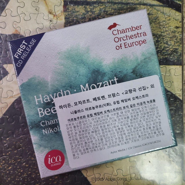 ICA 레이블에서 또 하나의 아르농쿠르 음반을 발매했는데, 유럽 체임버 오케스트라는, 아르농쿠르의 디스코그라피를 보면 알 수 있는 것처럼 협업을 계속해온 오케스트라다. 위의 음반 설명에도 적혀있듯, 창단 40주년을 기념하여 이 음반을 발매했다고 한다. 음반 내지에는 아르농쿠르의 미망인인 앨리스의 40주년 축하 메시지, 그를 추억하는 단원들의 메시지 같은 것들이 기록되어 있는데, 이를 통해서도 얼마나 긴밀한 관계인지를 알 수 있다.