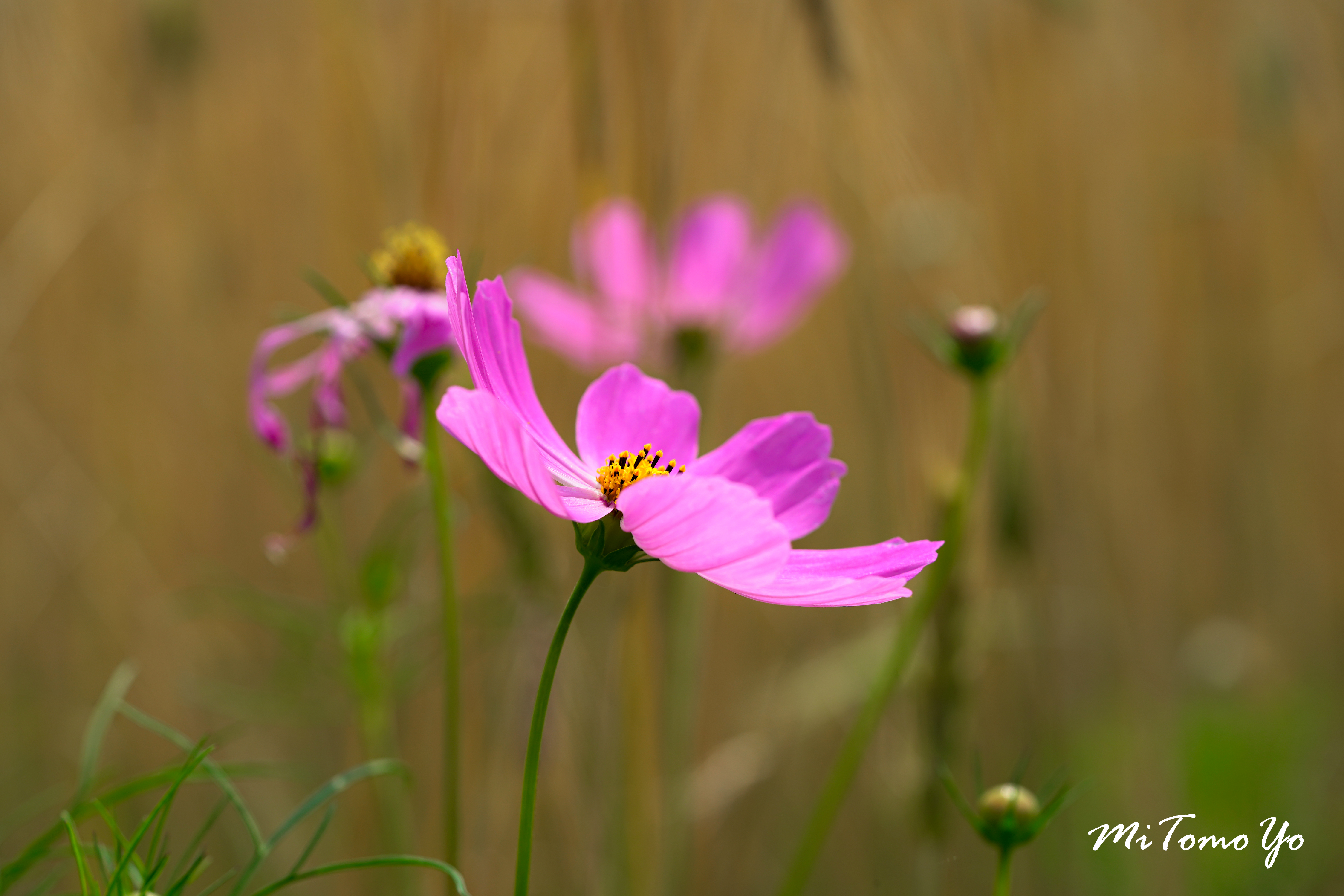 가을 꽃이라고 알고 있던 코스모스가 한여름에도 피어있는 것이 신기해서 찍어봤습니다.