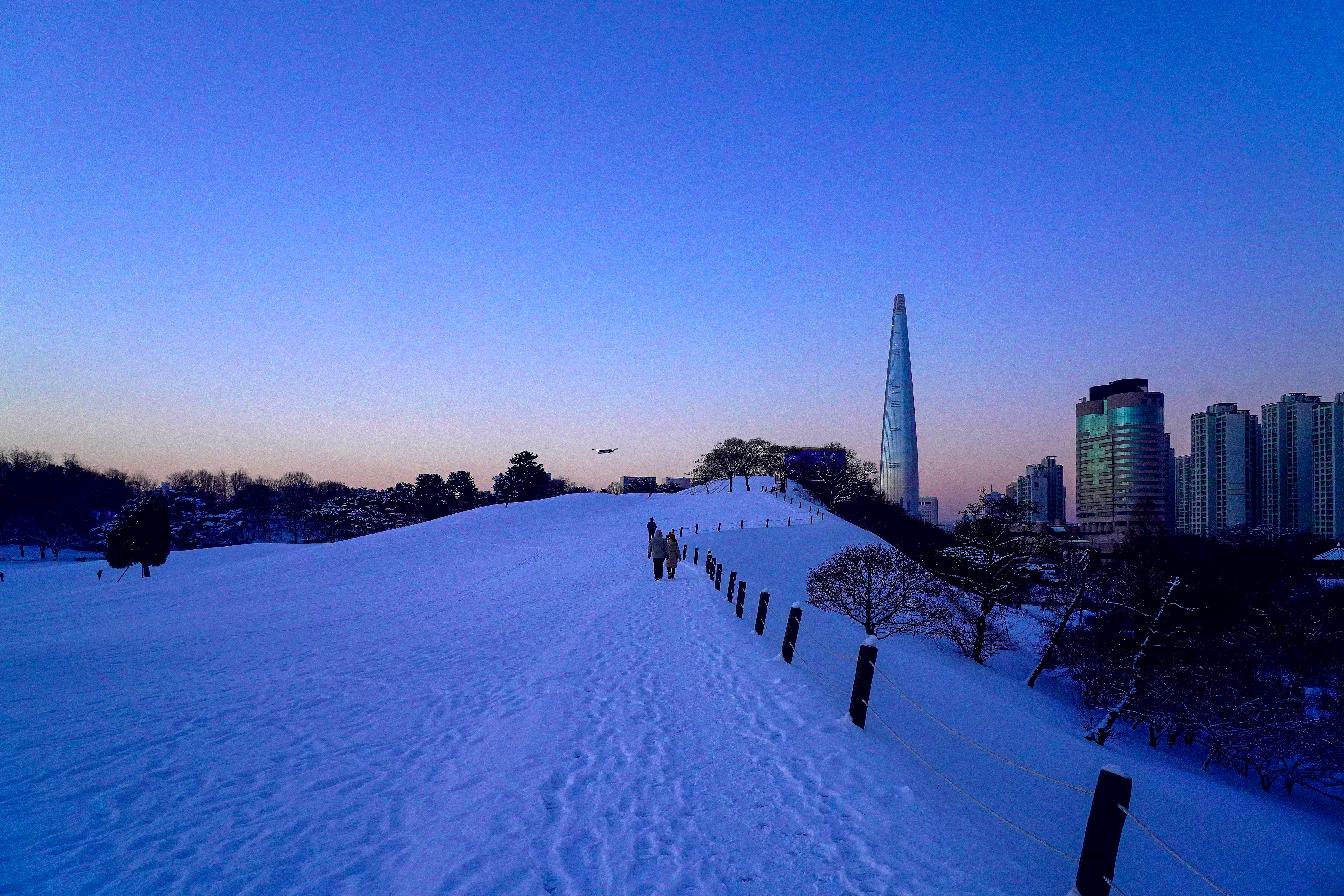 마침 저 때 토요일 내내, 그리고 일요일이 넘어가는 시점에 눈이 내렸던 것으로 기억하는데, 마침 주말근무도 없는 날이라서 꼭 눈 내린 사진을 담아보고 싶었습니다. 낮이 되면 햇빛과 사람들의 발길에 눈이 쌓인 모습을 온전히 담을 수 없을 것 같아서 해뜨기 전, 부지런히 일어나 바로 올림픽공원으로 갔습니다.