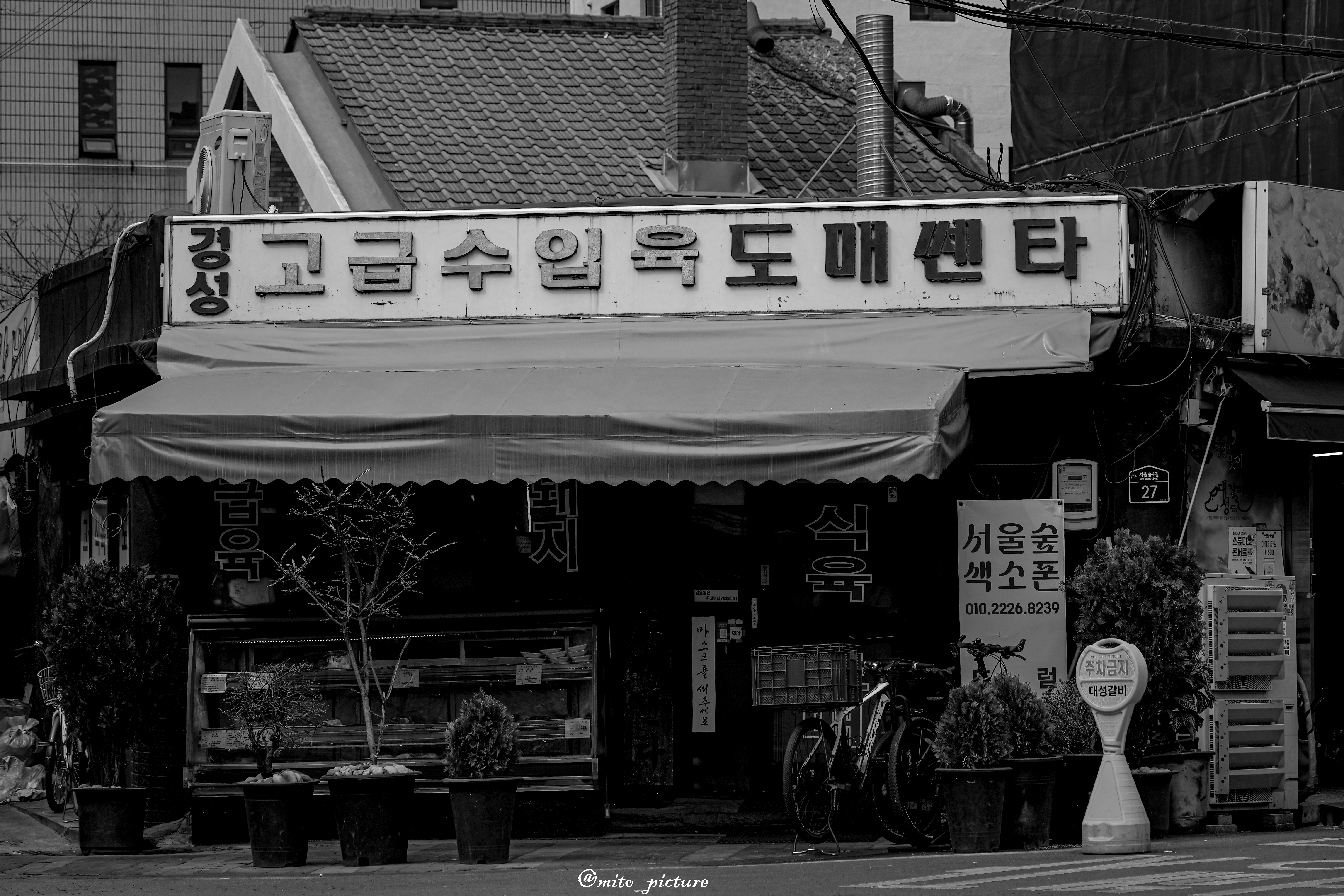 서울숲 근처 거리에 있는 다소 오래된 느낌의 점포가 있어서, 흑백사진으로 찍어봤습니다.