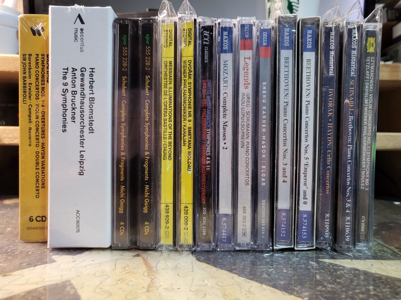 두 달간 지른 음반의 양이 너무 많아서 이제는 한 장의 사진에 다 담을 수가 없어서, 일단 관현악/협주곡 음반들만 담아봤다. 이번 포스팅도 이것들만 소개할 예정.