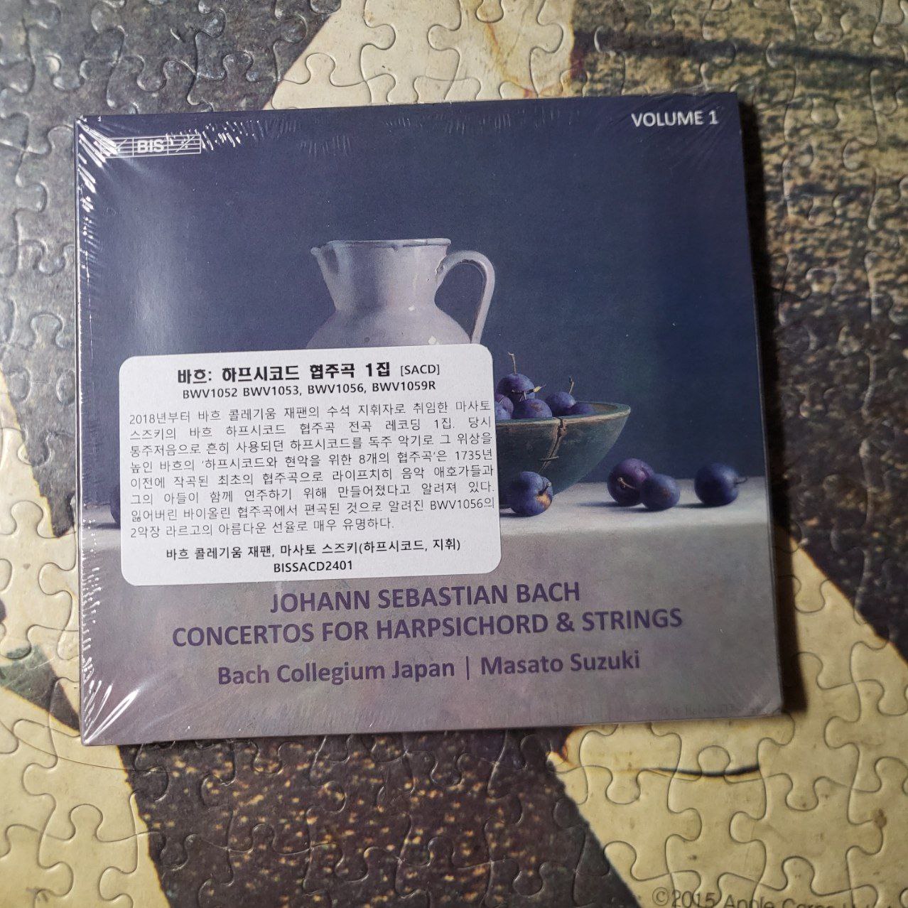 바흐 콜레기움 재팬과 스즈키 마사토의 바흐 하프시코드 협주곡 1집으로 피아노로도 종종 연주되는 d단조(1번) 협주곡을 비롯한 4개의 협주곡이 수록되어 있다. 8번 협주곡의 경우 겨우 8마디 반만이 만들어졌다고 하는데, 칸타타 'Geist und Seele wird verwirret'(BWV.35)와 거의 유사한 형태란 점에서 착안하여, 해당 칸타타의 일부 악장을 차용하여 스즈키 마사토가 재구성을 했다는 언급이 있다.