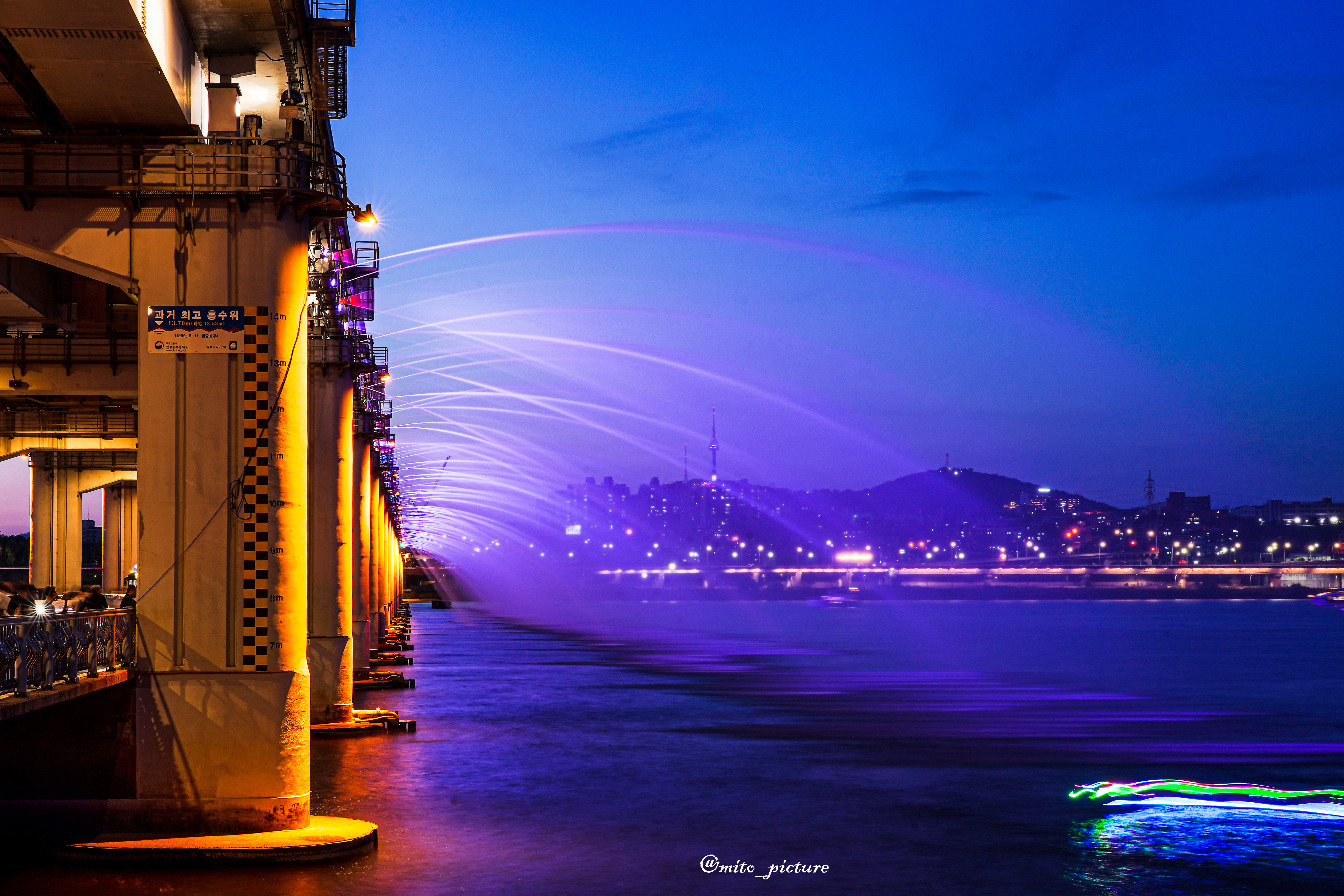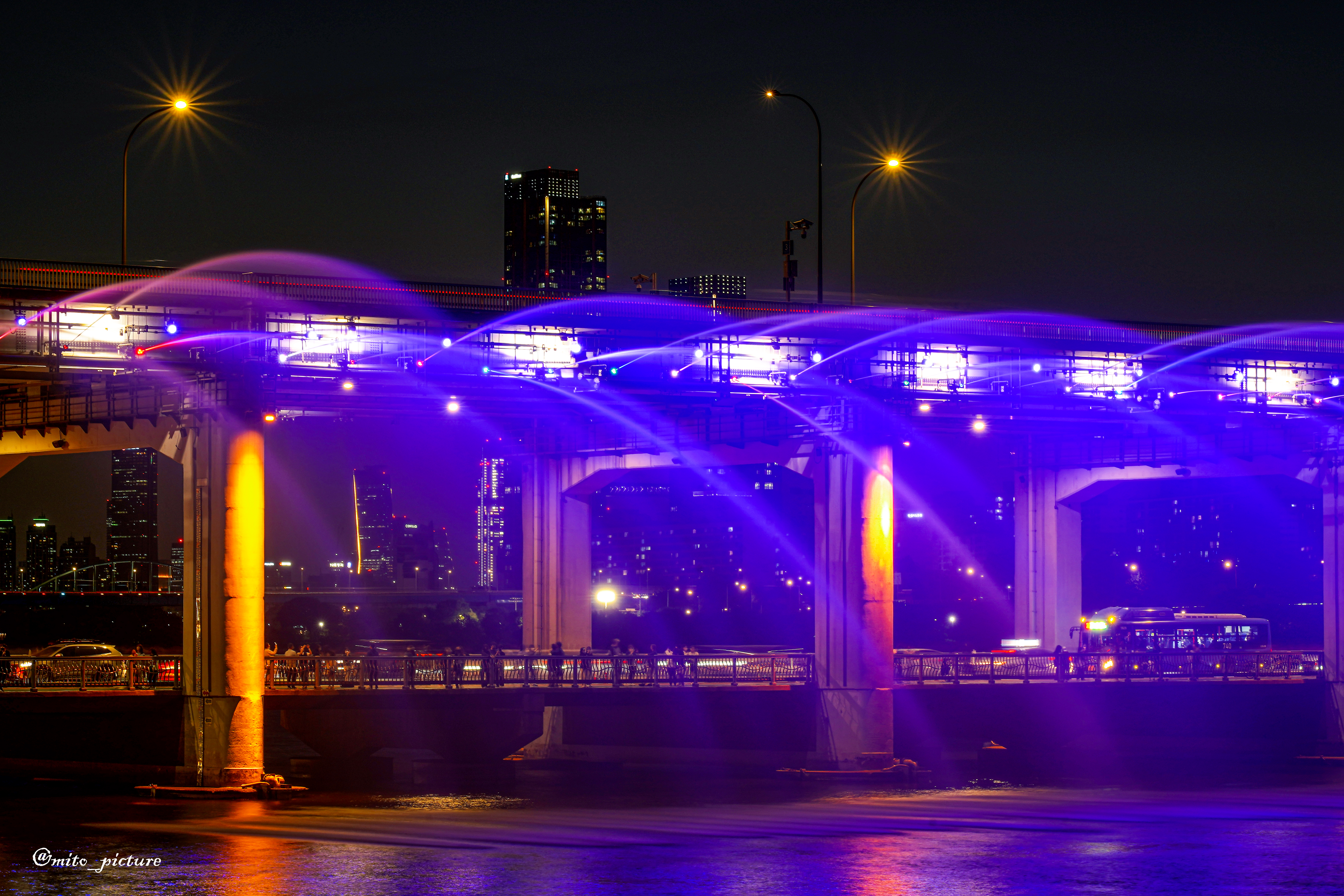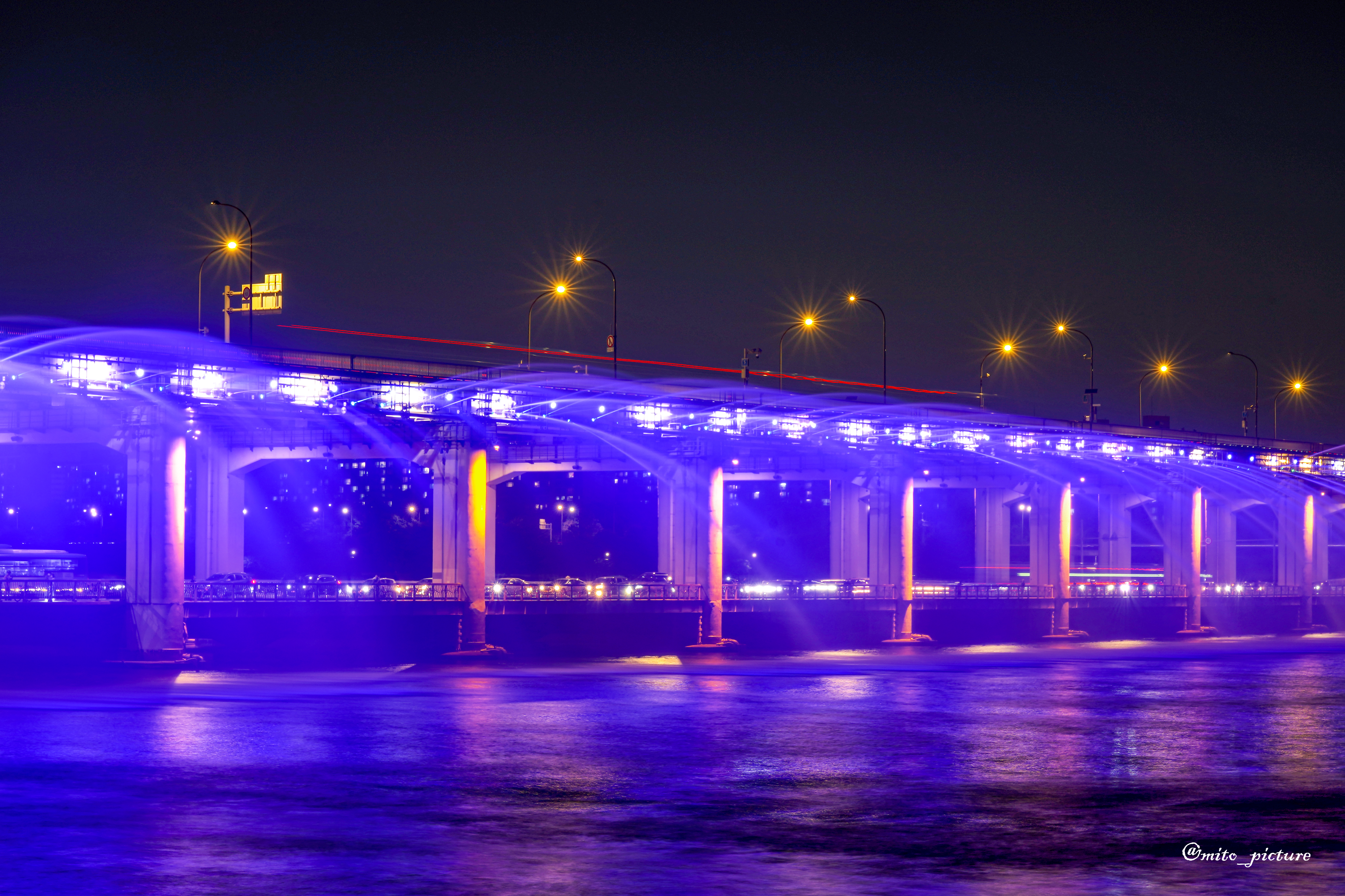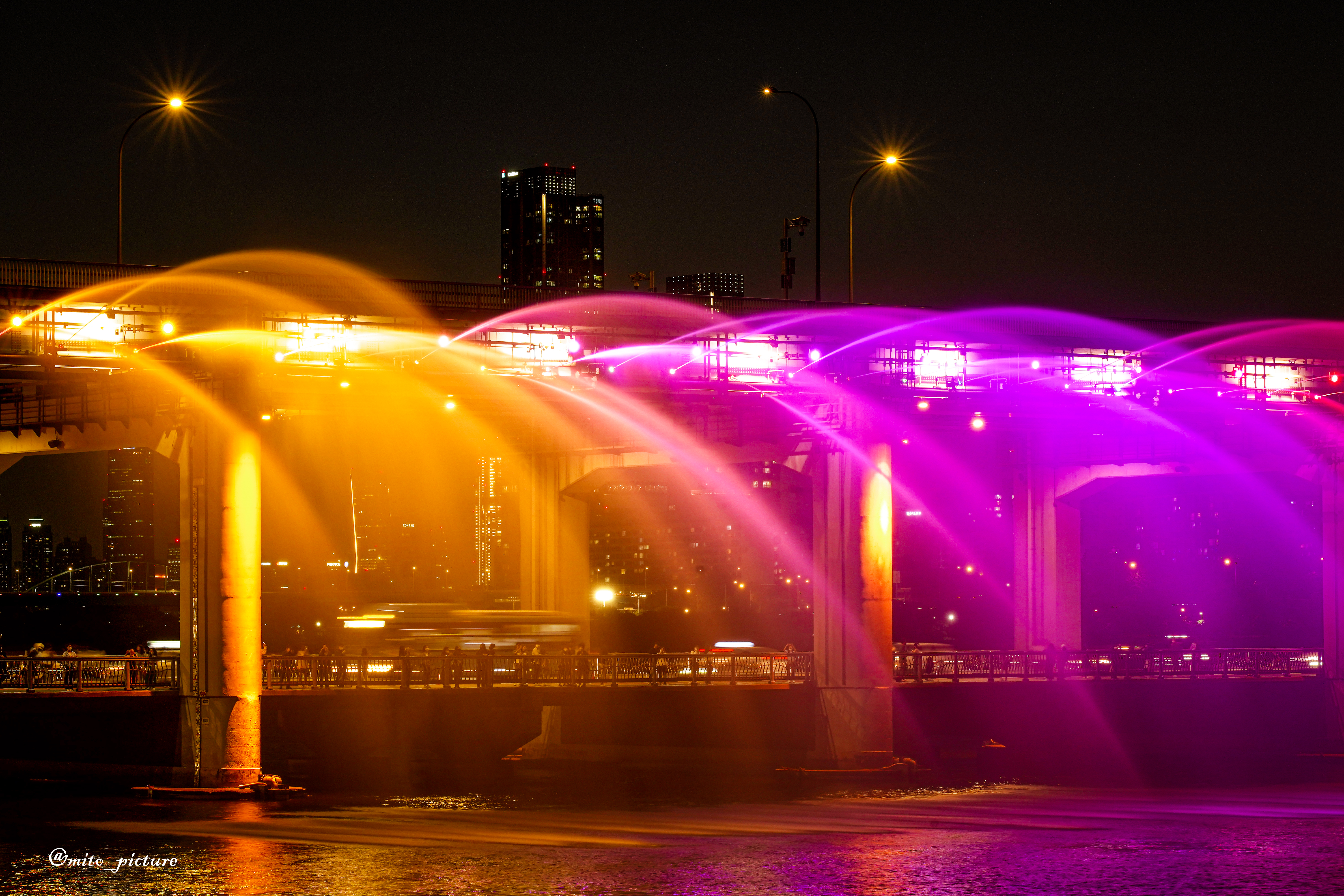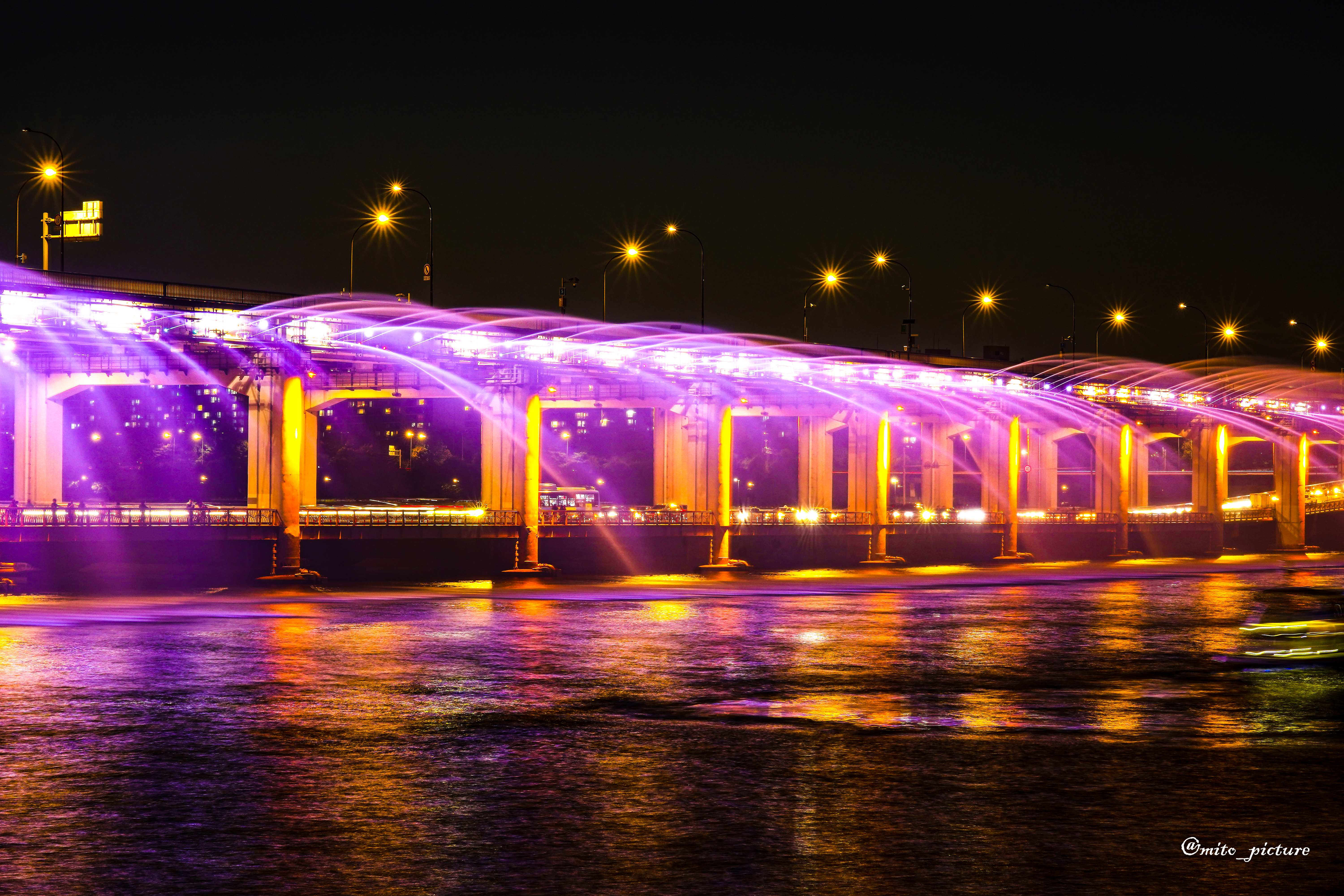 반포대교의 야간명소 달빛무지개분수를 담아봤습니다.