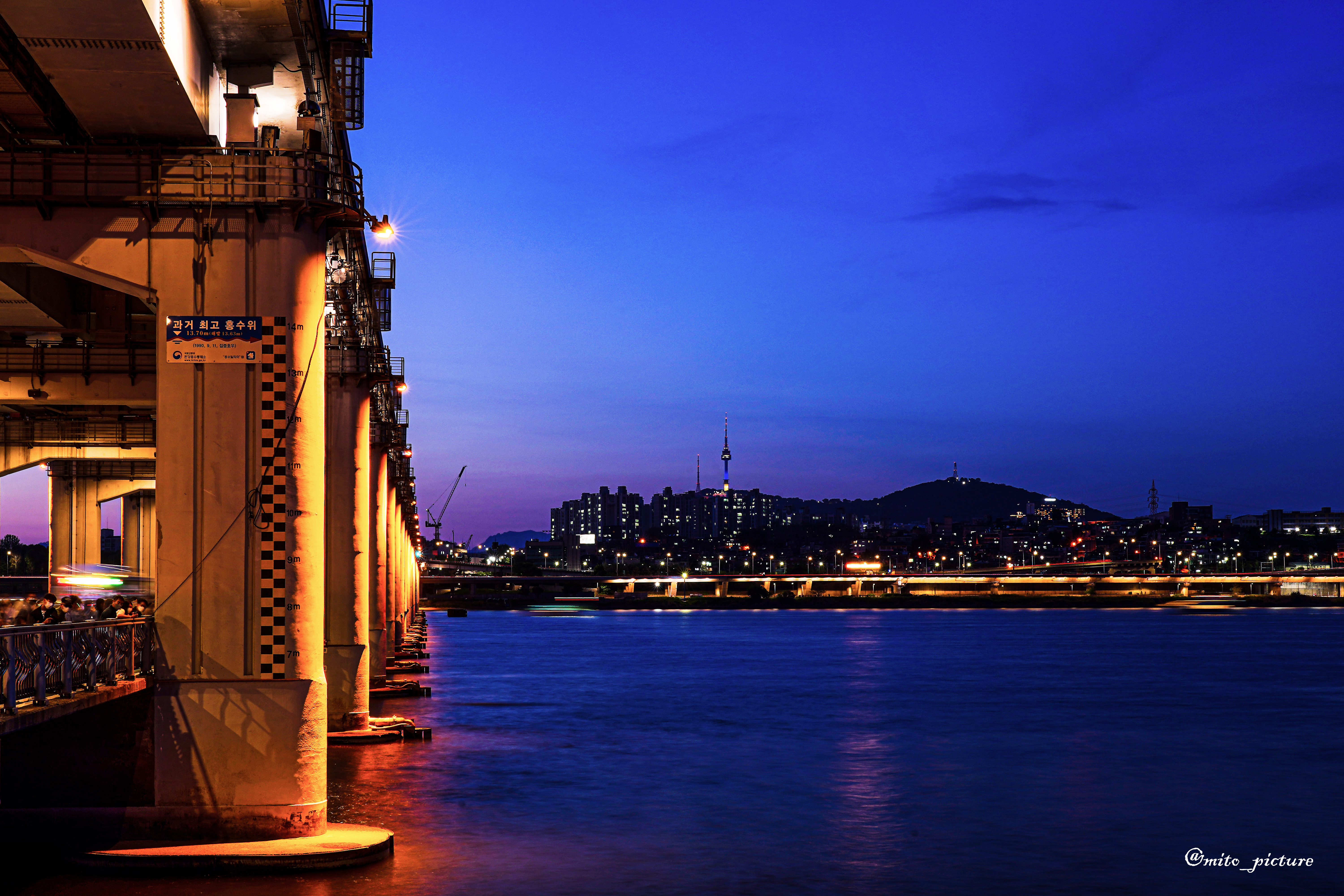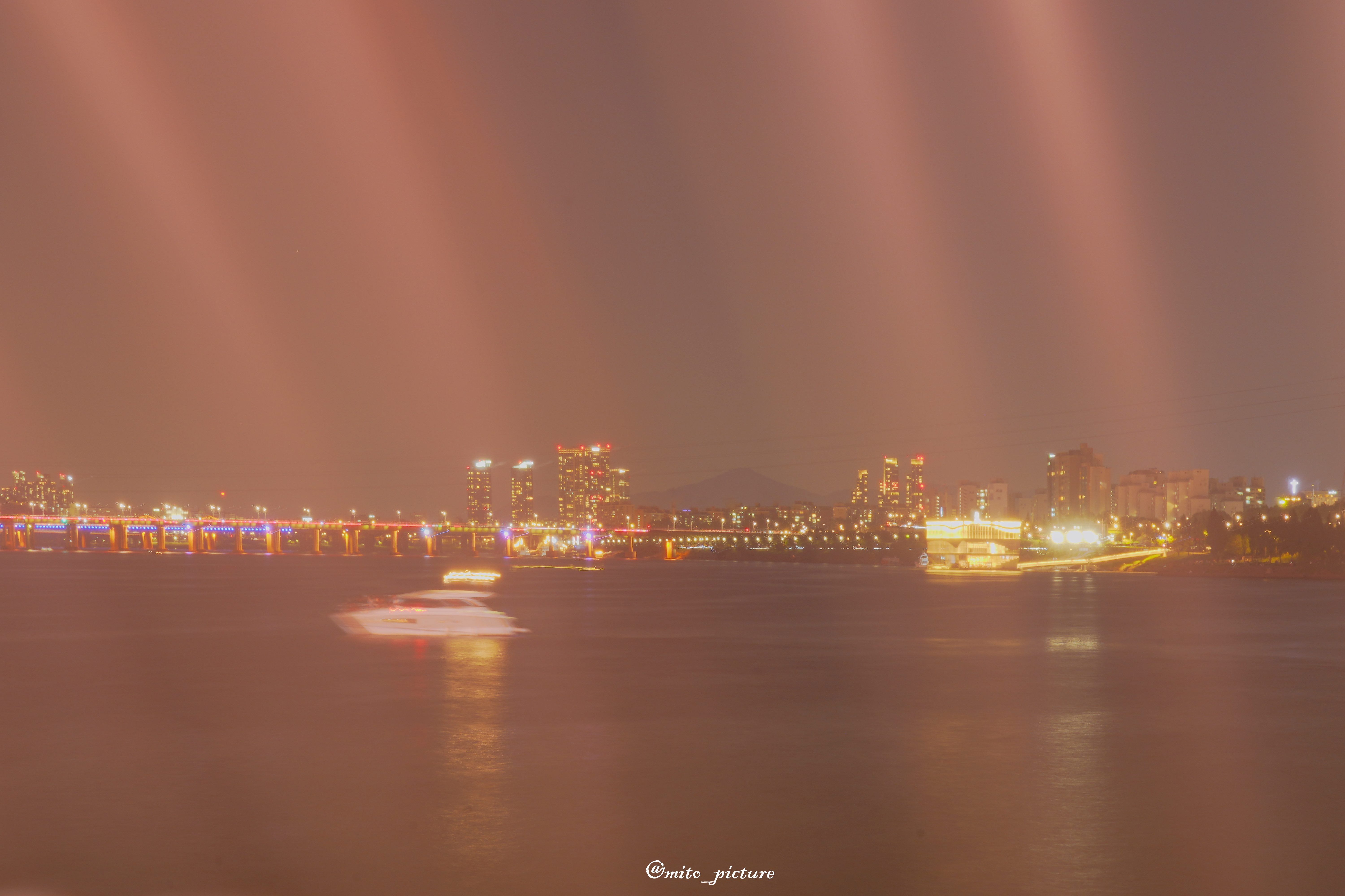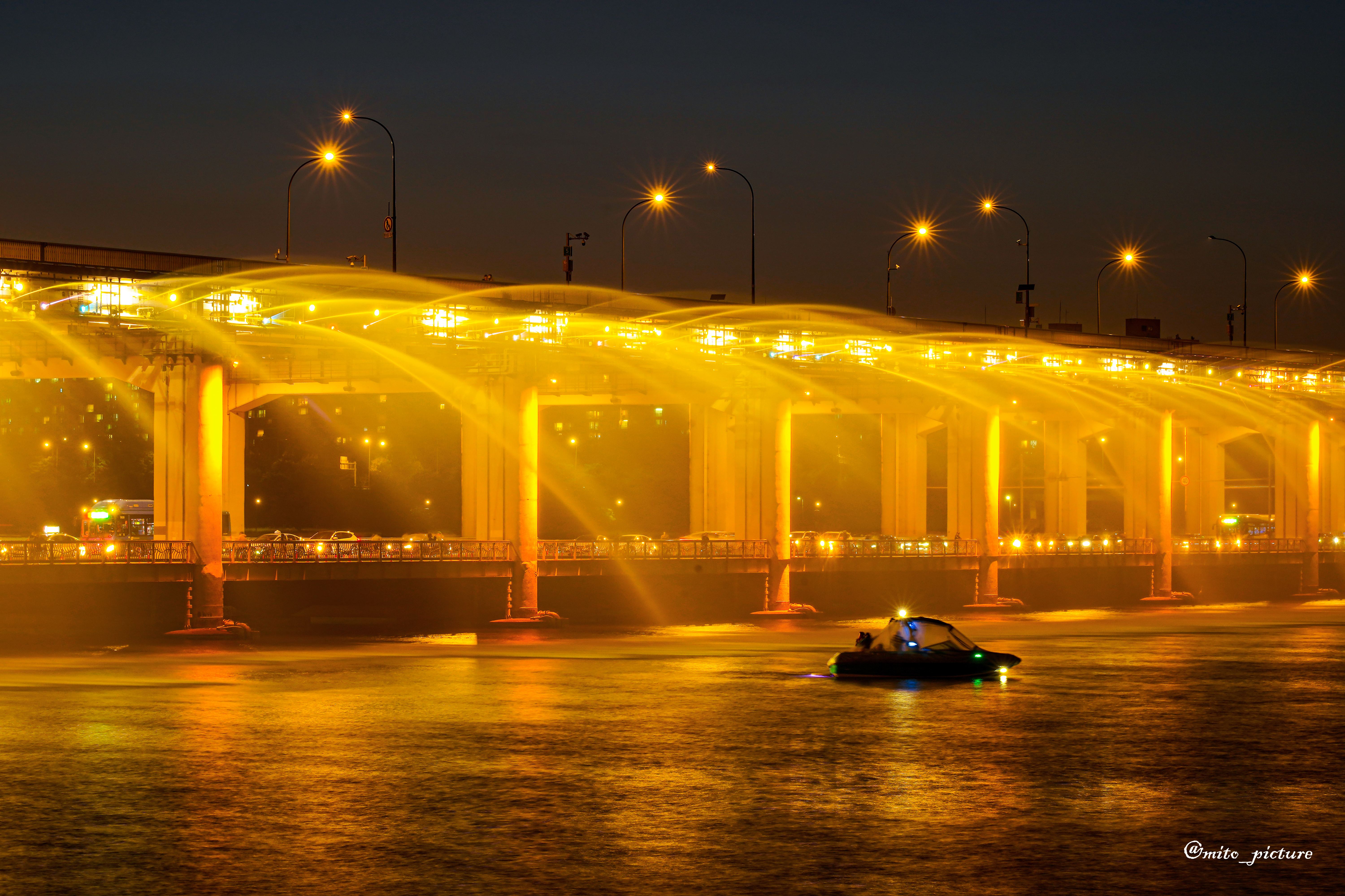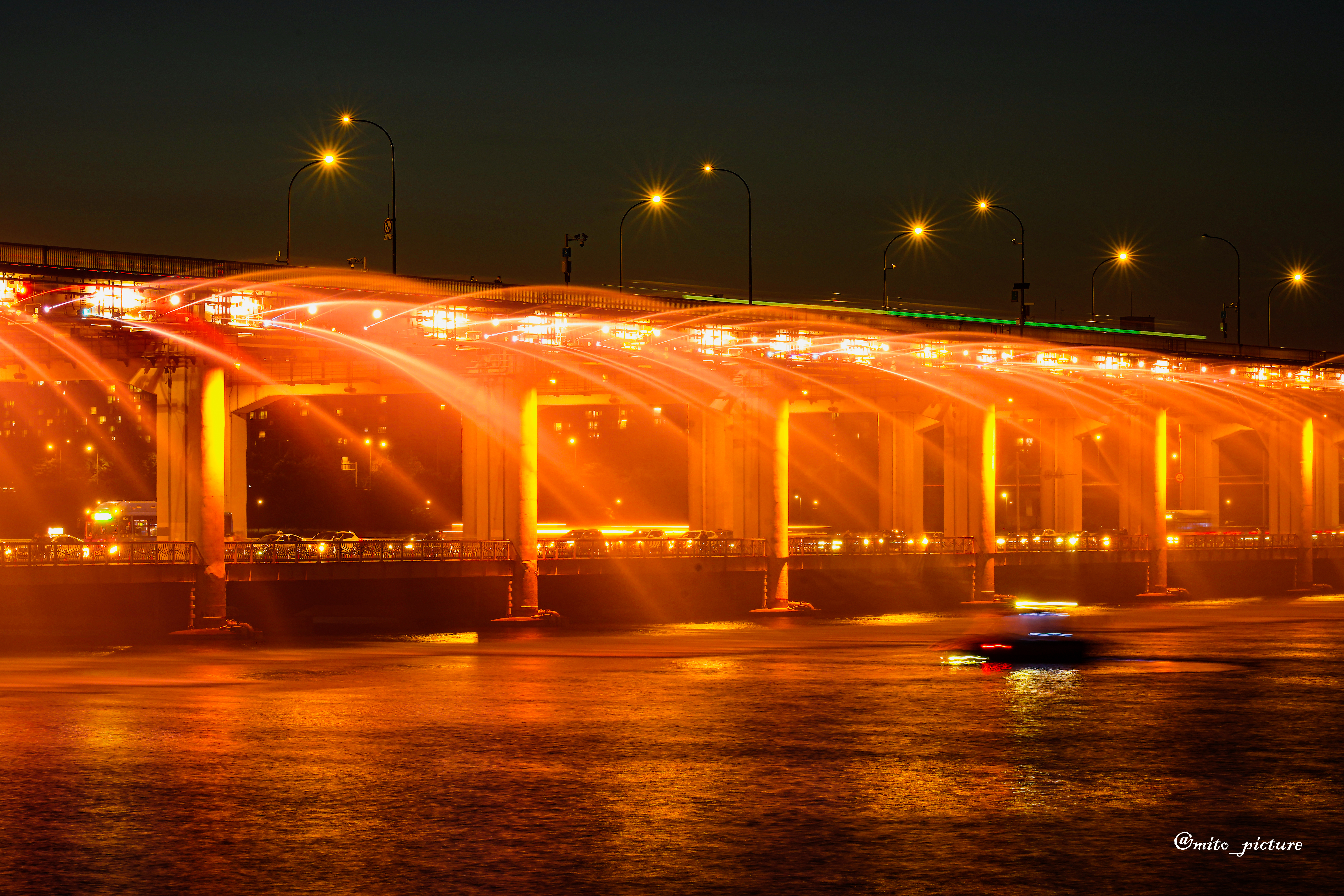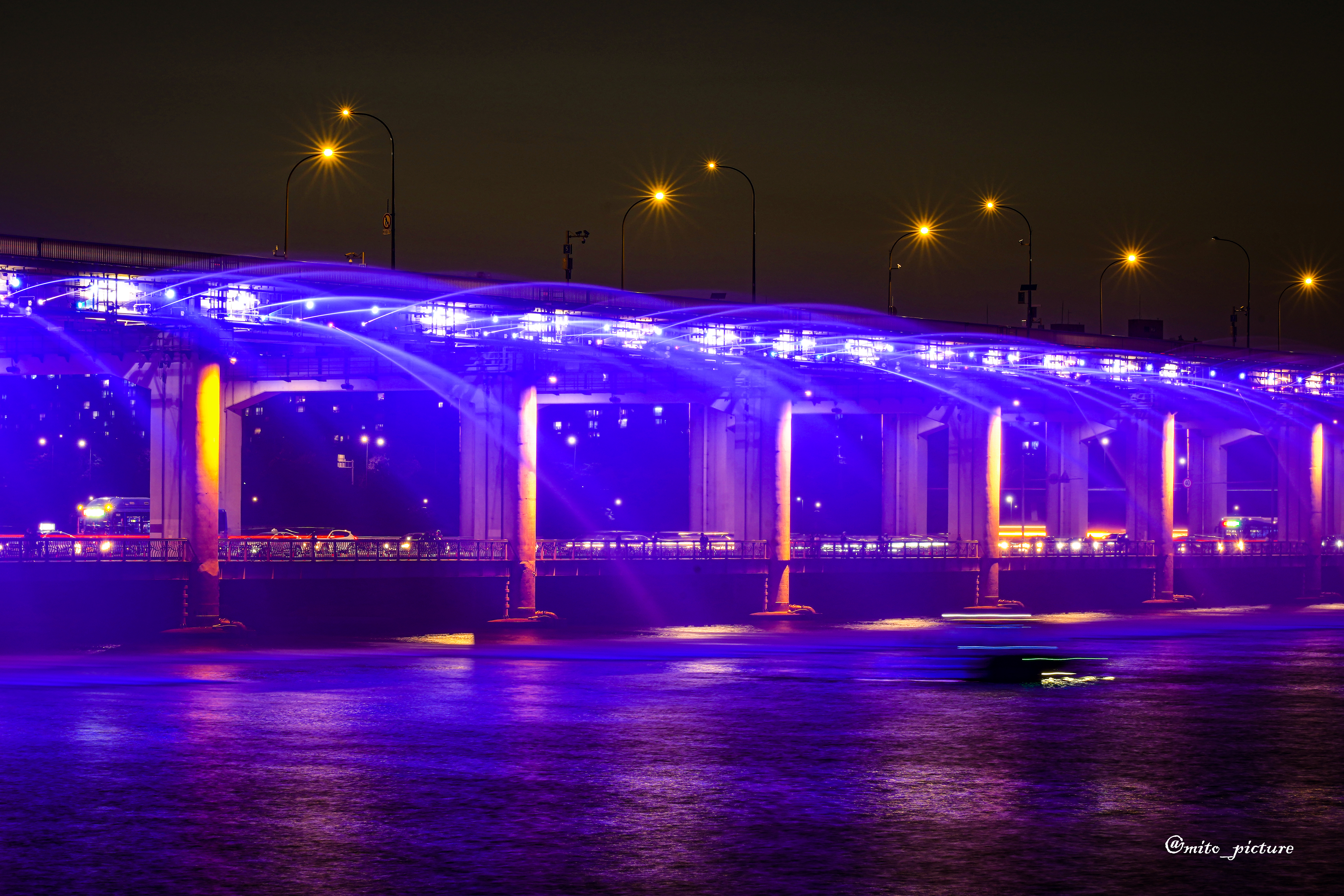 반포대교의 야간명소 달빛무지개분수를 담아봤습니다.