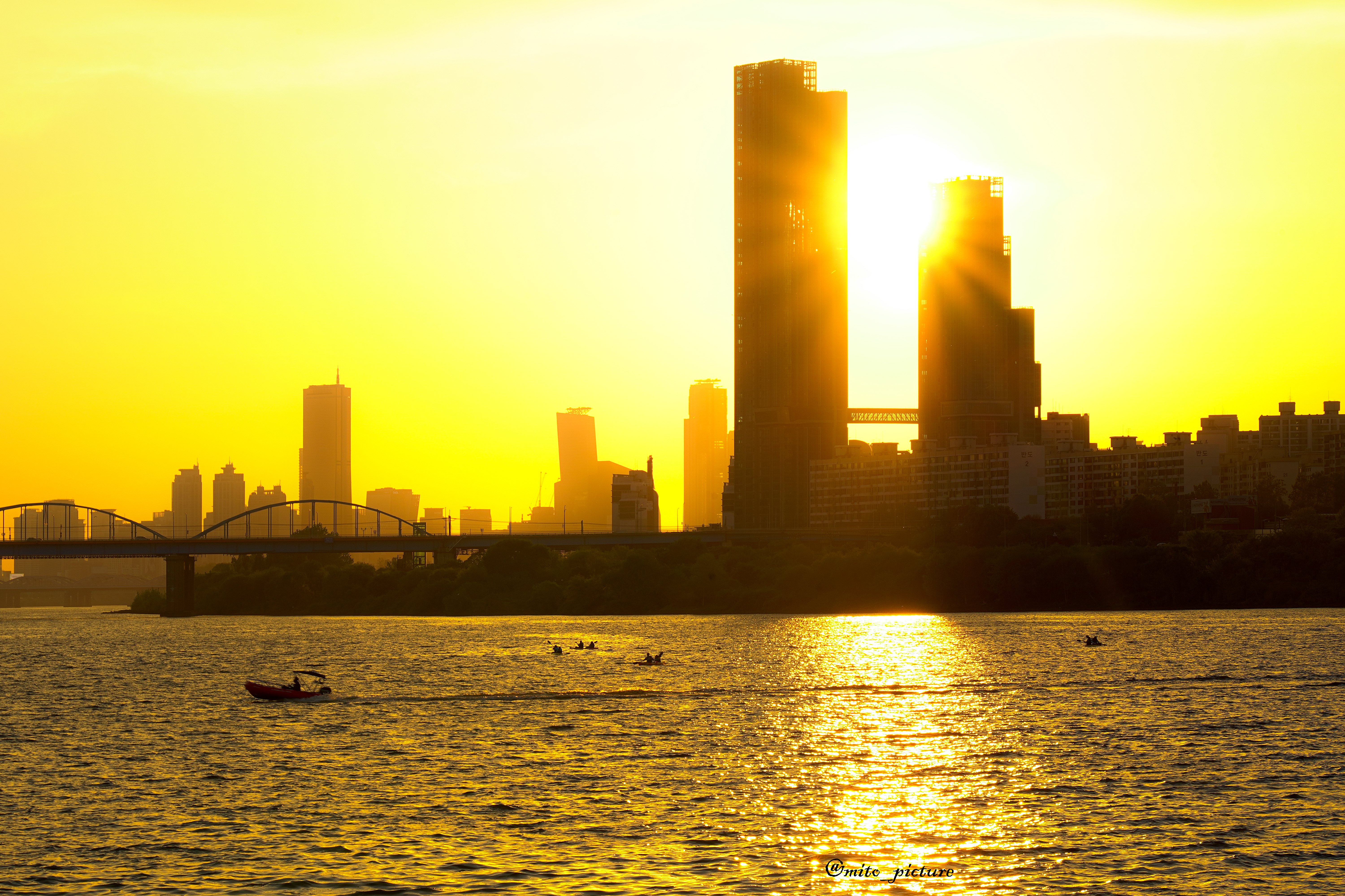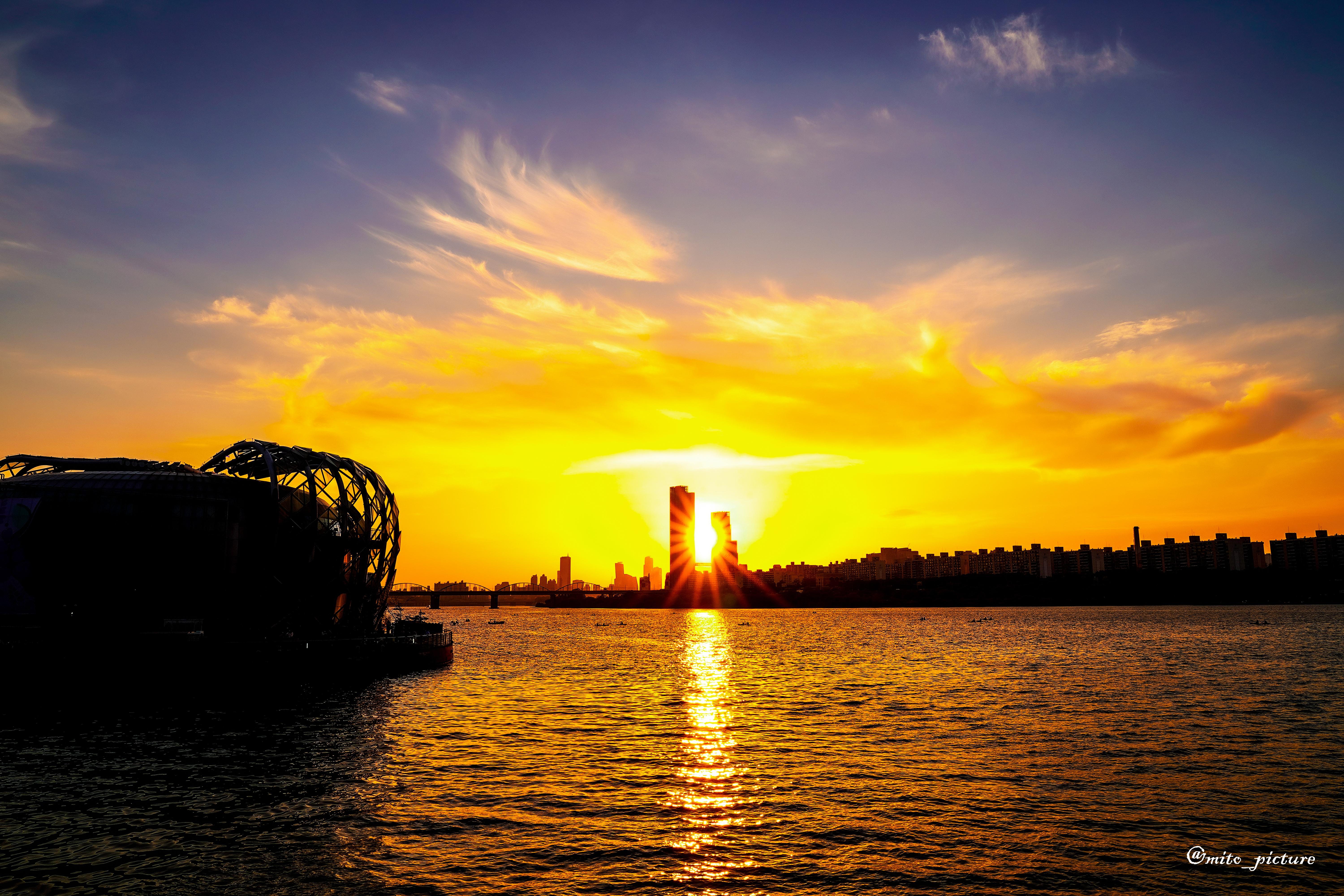 우선 분수가 가동되기 전 시간이 조금 남아서 찍어본 노을 사진부터