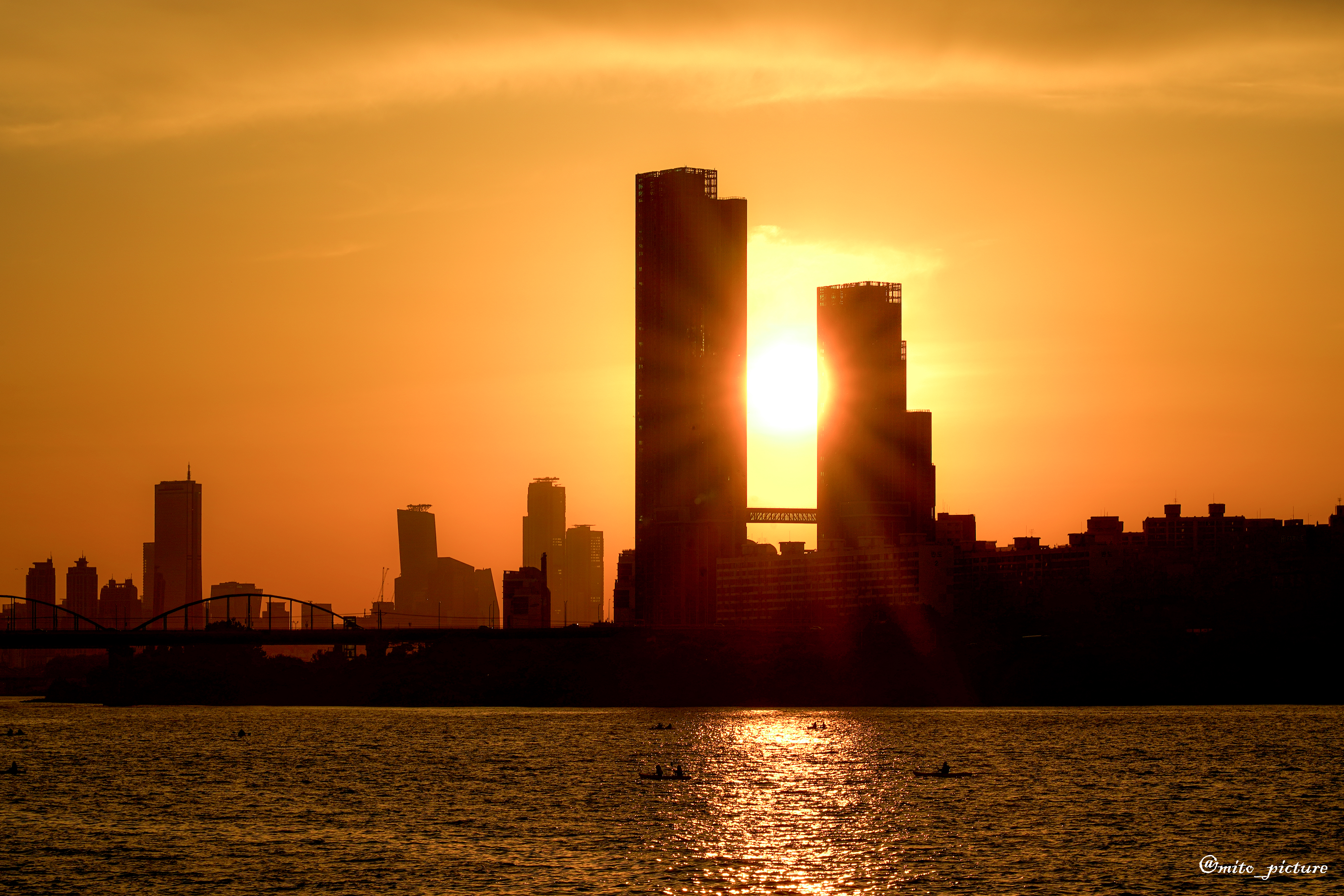우선 분수가 가동되기 전 시간이 조금 남아서 찍어본 노을 사진부터