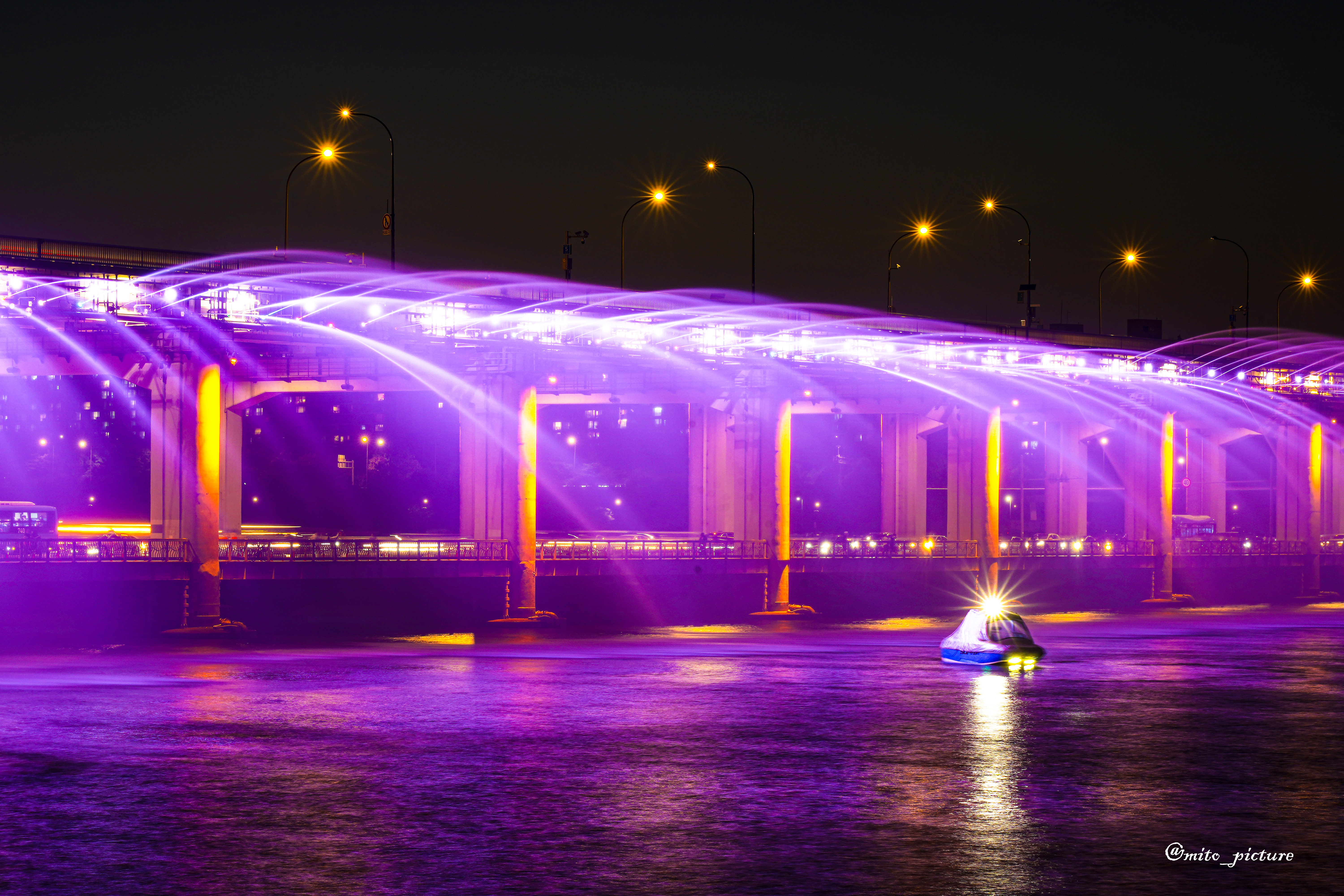 반포대교의 야간명소 달빛무지개분수를 담아봤습니다.