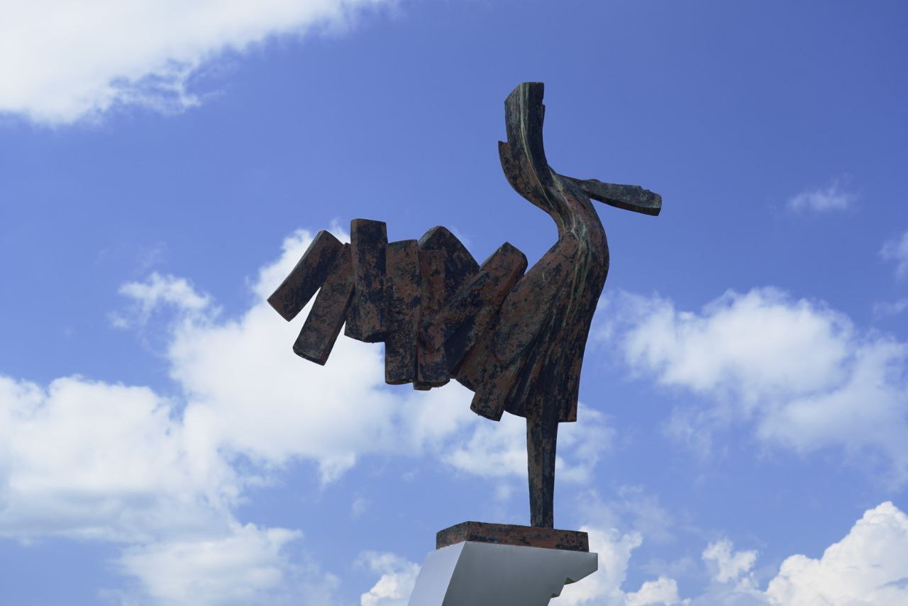 호수를 따라 설치된 여러 조각상들.