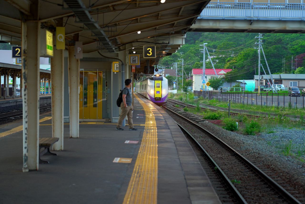 토야 호수로 출발할 열차를 기다린다.
