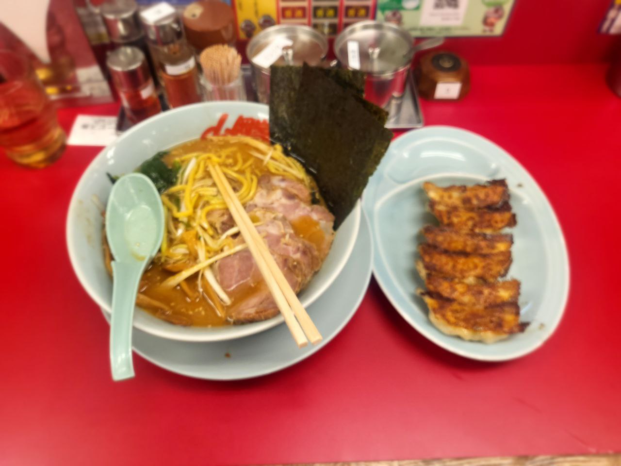 사진만 봐도 정신줄을 놓은 것이 보인다. 초첨이 전혀 맞지 않은 사진이다. 미소라멘과 교자. 토핑에 죽순을 추가하였다. 맥주도 마실까 했지만 별로 끌리질 않아서 말았다.