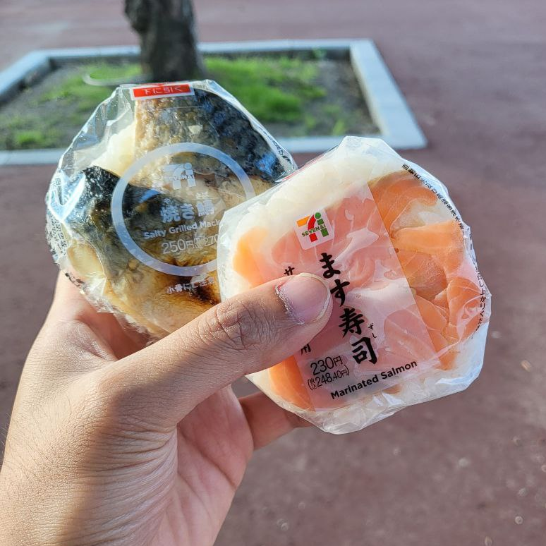 이제야 늦은 점심을 먹는다. 세븐 일레븐제 고등어구이 주먹밥과 연어 주먹밥. 맛은 그냥저냥이다.