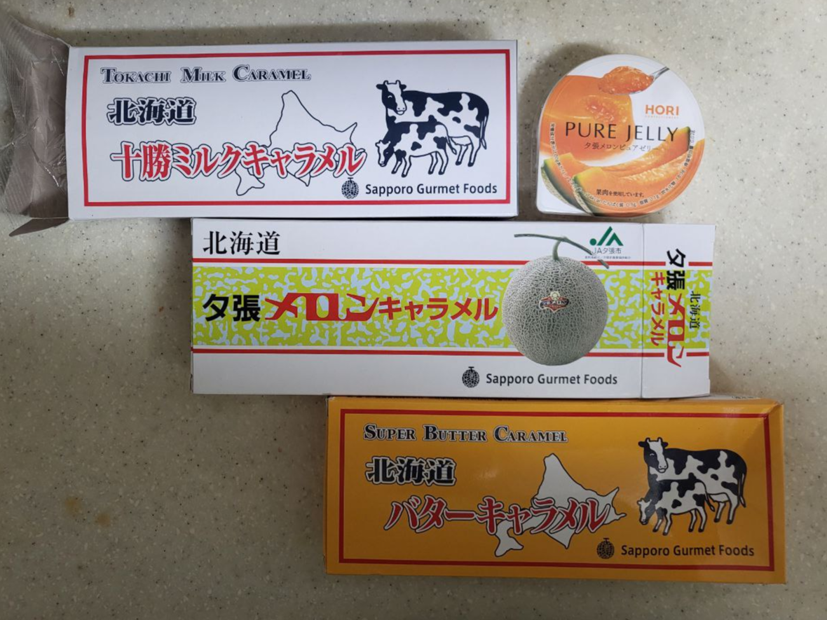 그리고 집에서 먹을 생각으로 구입한 캐러멜과 유바리 멜론 푸딩. 가게 내에서 호객당해서 산 것이다. 원래 치즈 케이크를 담당하던 분이었는데, 치즈 케이크의 경우 냉동 보관이 필수인 반면에 나는 냉동보관을 할 수 있는 상황이 되지 않다 보니 그렇다면 이건 힘들 것 같다는 답을 들었기 때문이다. 대신 구입한 것이 푸딩과 캐러멜이었다.