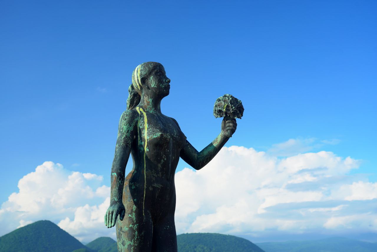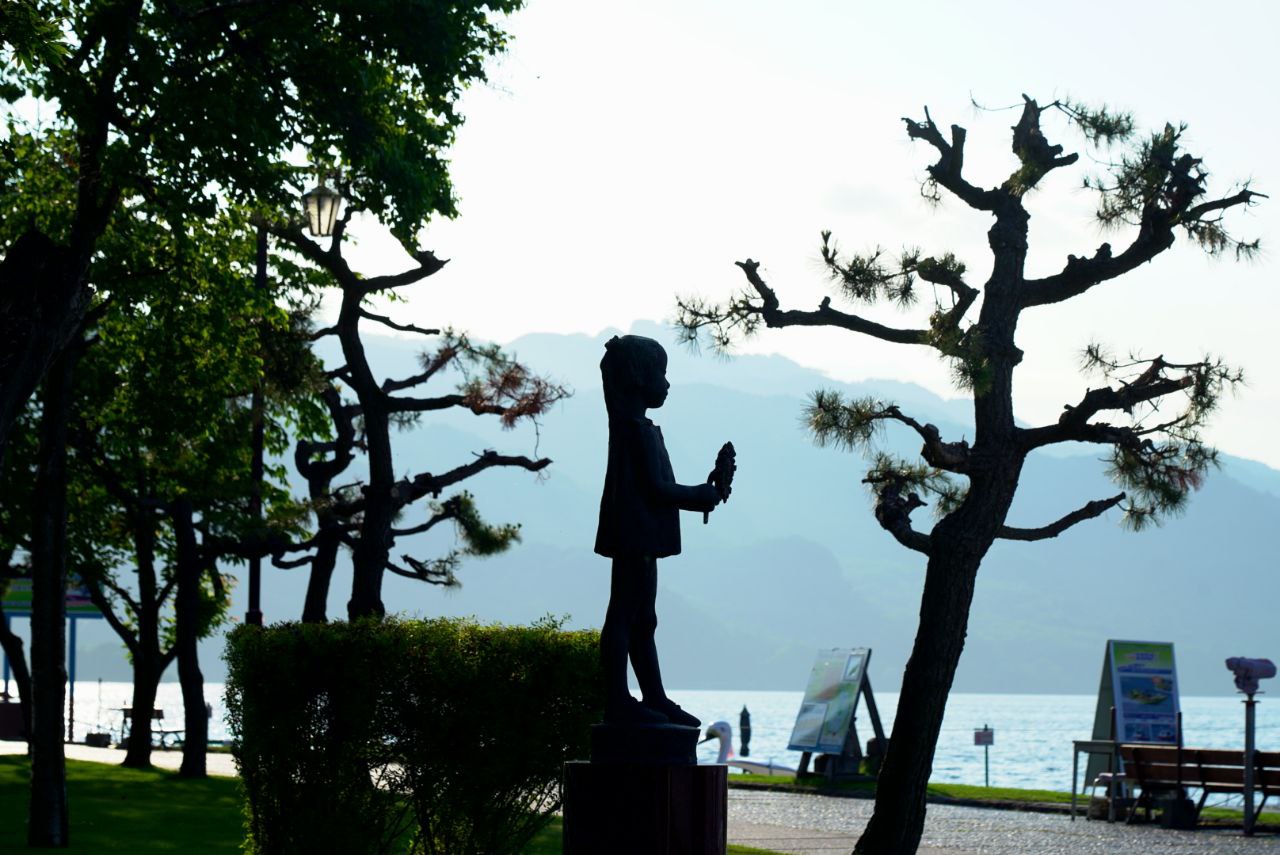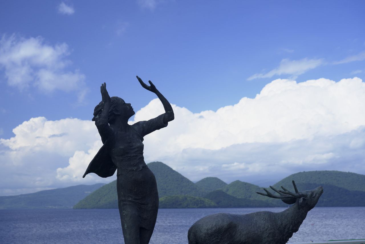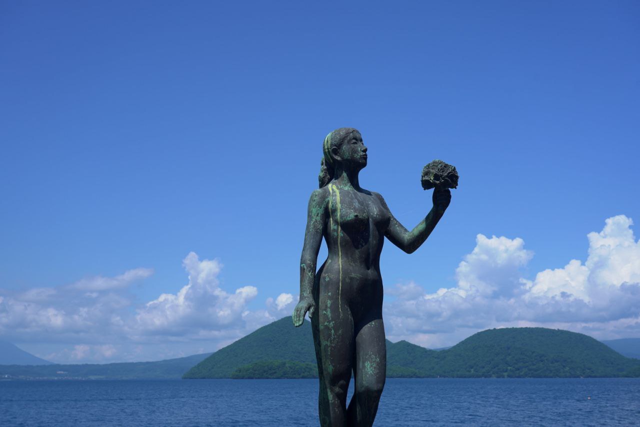 배를 타고 선착장에 돌아왔다. 이제 여기서 할 수 있는 것은 모두 했기에 토야역으로 돌아가면 되는데, 버스는 1시간은 기다려야 도착한다. 토야 호수 입구 근처를 서성이며 조각상들 구경을 좀 더 했다. 가운데에 있는 소녀상은, 산책로에서 살짝 떨어져 있어서 그런가 사람들에게 관심을 덜 받는 것 같아 안쓰럽단 생각도 들었다.