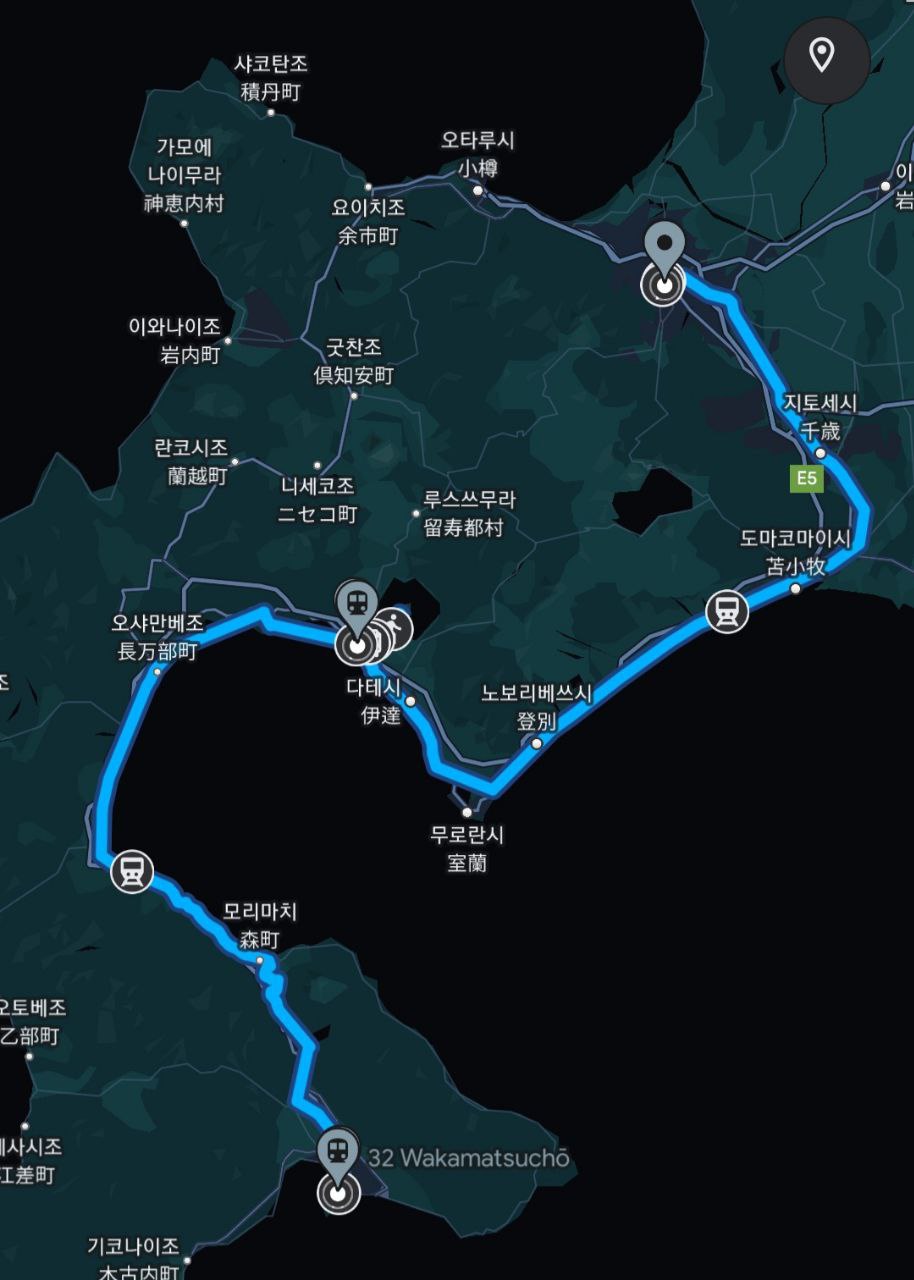 ㅇ 열차-JR 홋카이도(하코다테-토야 / 토야-삿포로) (10:03~11:57 / 18:31~20:37): 318.7km(누적: 1,293km)