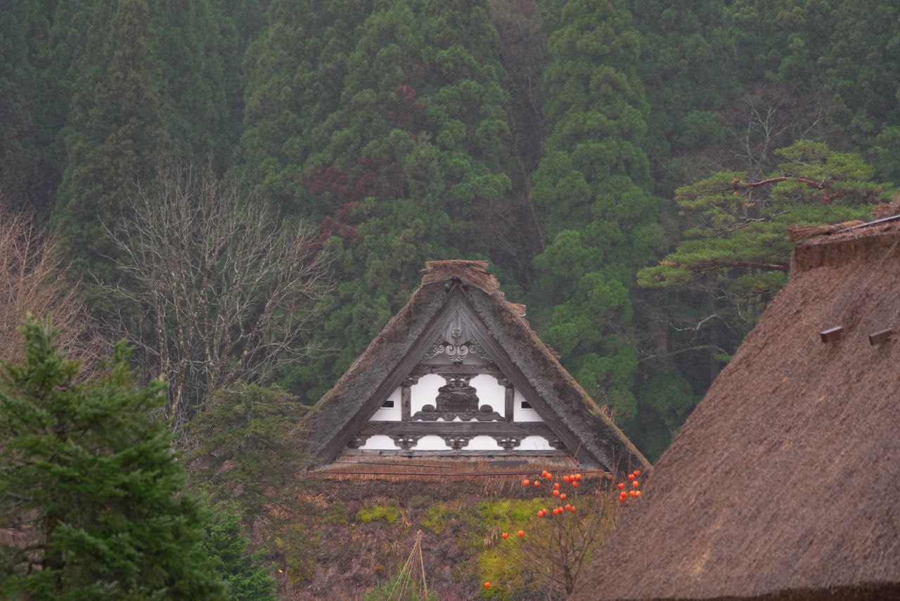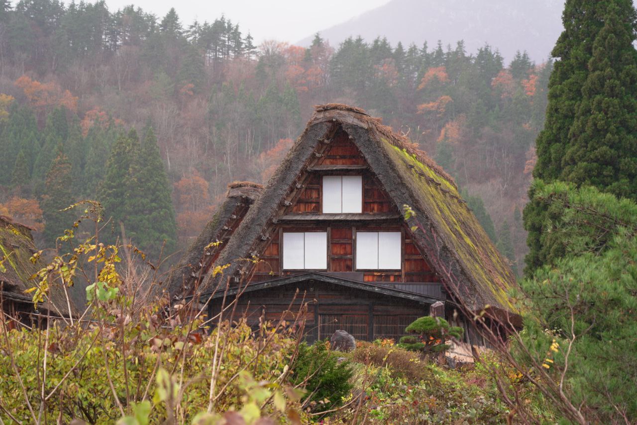 시라카와고의 전통 가옥. 눈이 굉장히 많이 오는 곳이라 지붕의 경사가 아주 가파르다고 하며, 지붕은 볏짚을 이용해서 만든다고 한다. 당연히 영구적으로 쓸 수 있는 소재는 아니기에 주기적으로 지붕을 교체하는 작업을 하는데, 이때 마을 사람들이 모여서 같이 일을 한다고 한다.