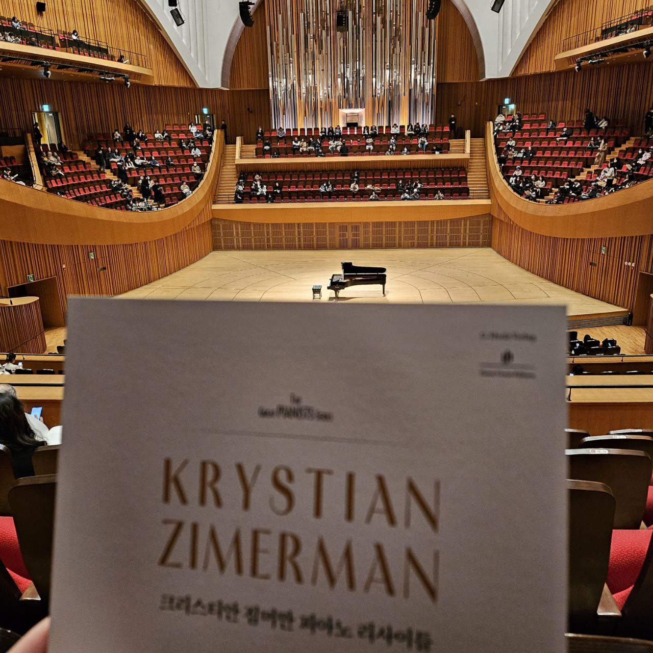 1부와 2부 중간에 벨소리와 알람소리가 한 번씩 나긴 했지만, 다행히 감상에 치명적인 영향을 줄 정도까지는 아니었고 그것만 제외하면 전반적으로 관객 매너가 꽤나 좋았었다. 요새 들어서 앙코르를 연주하면 동영상으로 찍거나 하는 경우가 많아서 언짢게 느껴질 때도 많았는데, 사전에 공지가 잘 된 덕분인지는 몰라도 오늘은 그런 사람들이 적어도 내 주위에는 없었던 것 같았다. 앙코르 곡은 총 세 곡을 연주했는데 사실 세 곡 모두 잘 모르는 곡인 데다, 세 곡 모두 잔잔한 분위기의 곡이어서 편하게 감상할 수 있었다.
